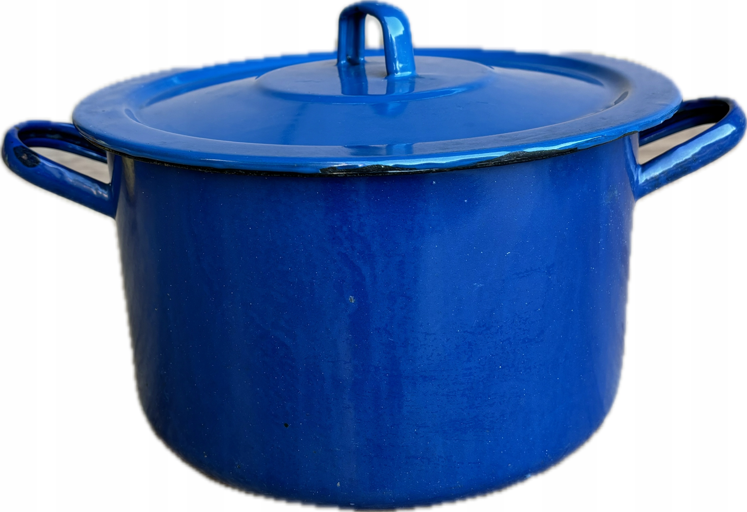 Эмалированный горшок с крышкой периода Польской Народной Республики. Подписано. Следы использования. Размеры; высота 18х35 с ушками. х 27,5 см, объём 6л. Состояние товара видно на фотографиях.