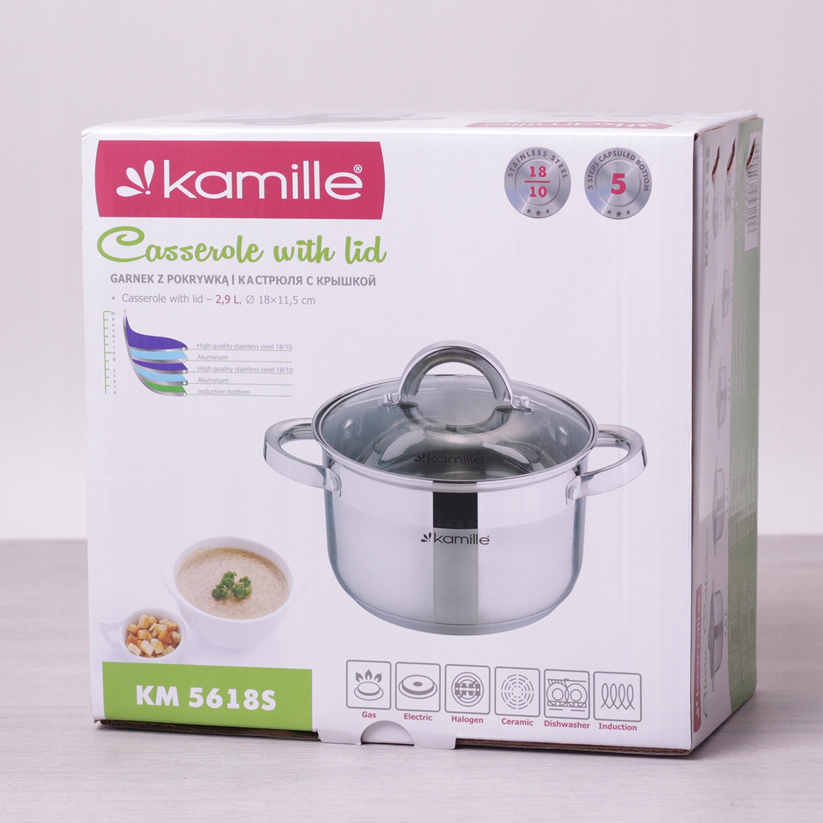 Кастрюля из нержавеющей стали 2,9 л со стеклянной крышкой INDUCTION KAMILLE KM-5618S