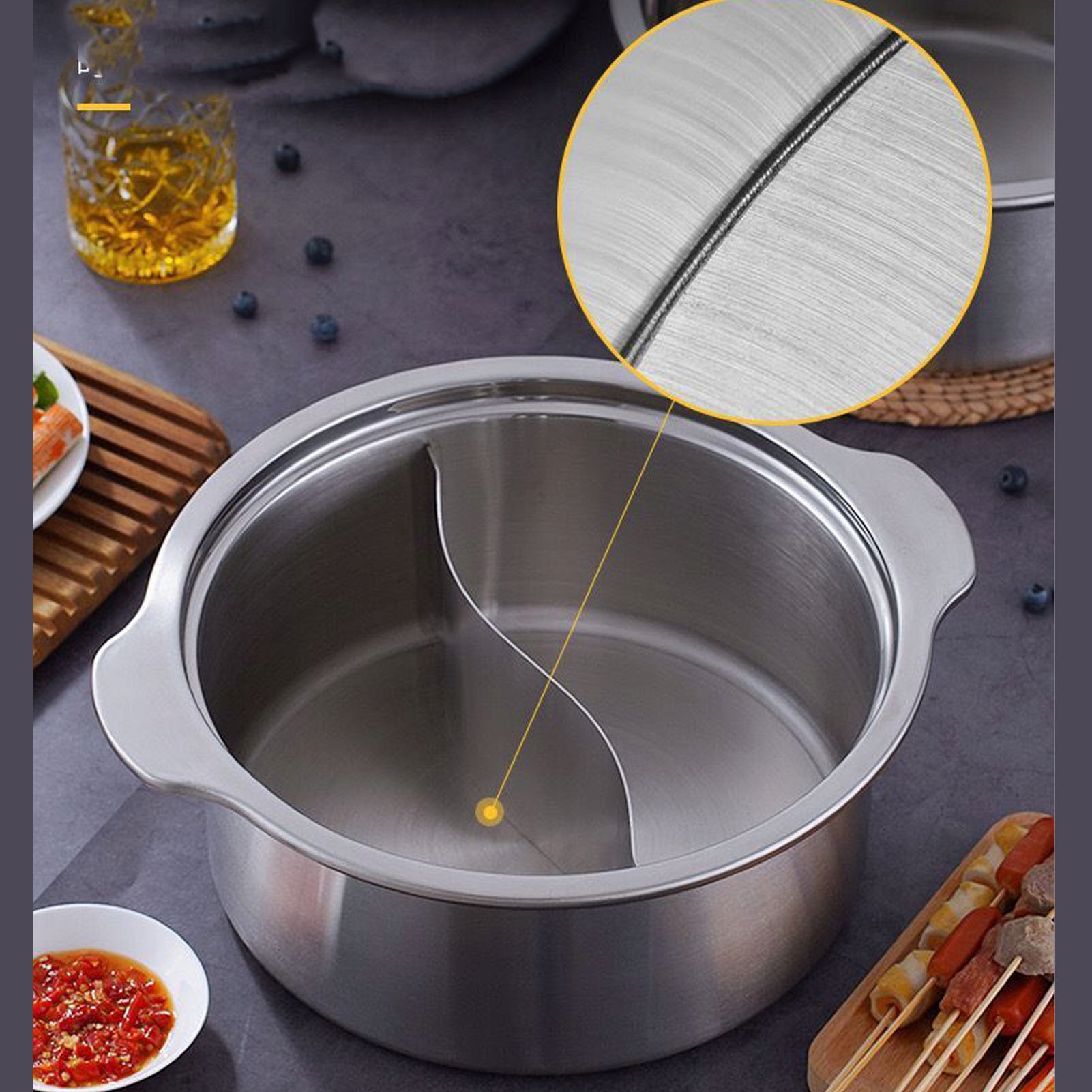 2. Углубленная конструкция: эта кастрюля из нержавеющей стали с углубленной кастрюлей идеально подходит для варки и приготовления пищи в горячей кастрюле, что позволяет увеличить время приготовления и улучшить распределение тепла.
