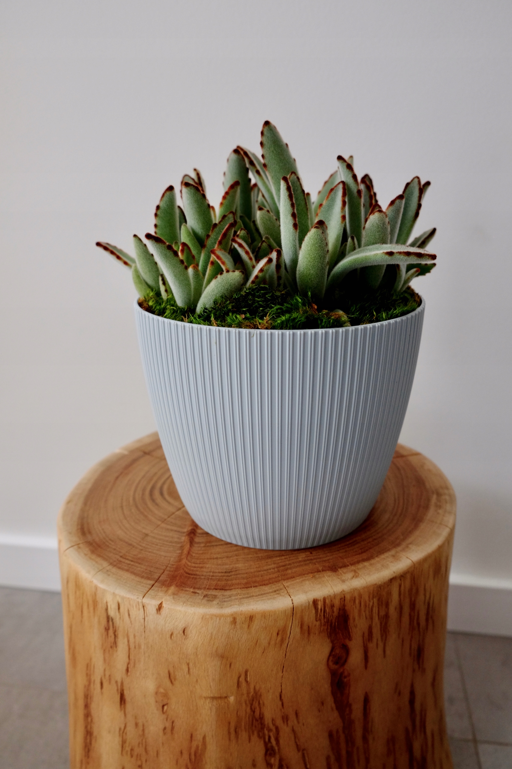Накрытие для цветов Круглый цветочный горшок MAGNOLIA JUMPER, диаметр 300 мм, высота 250 мм, узор в вертикальные полосы, цвет OLIVE + основание OLIVE