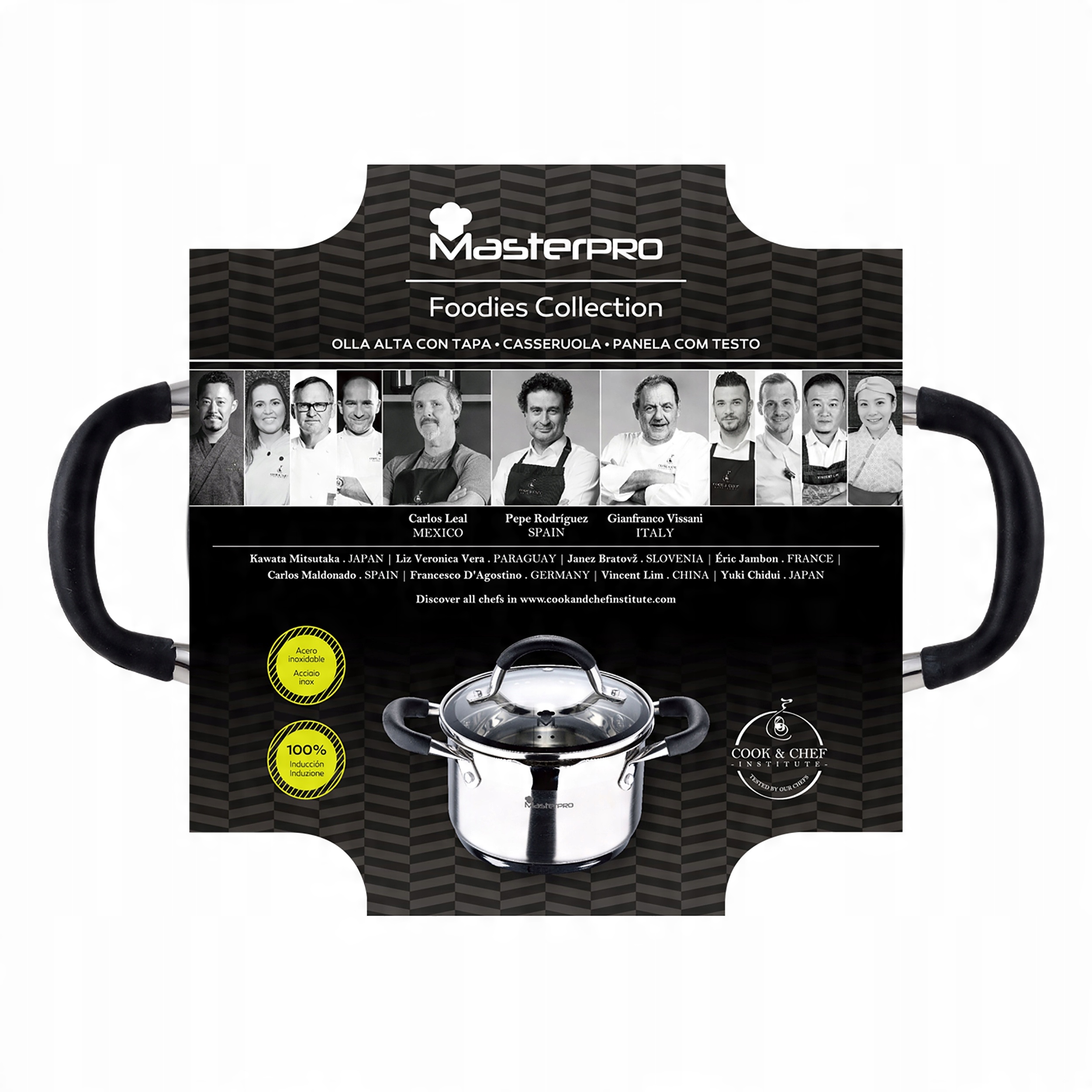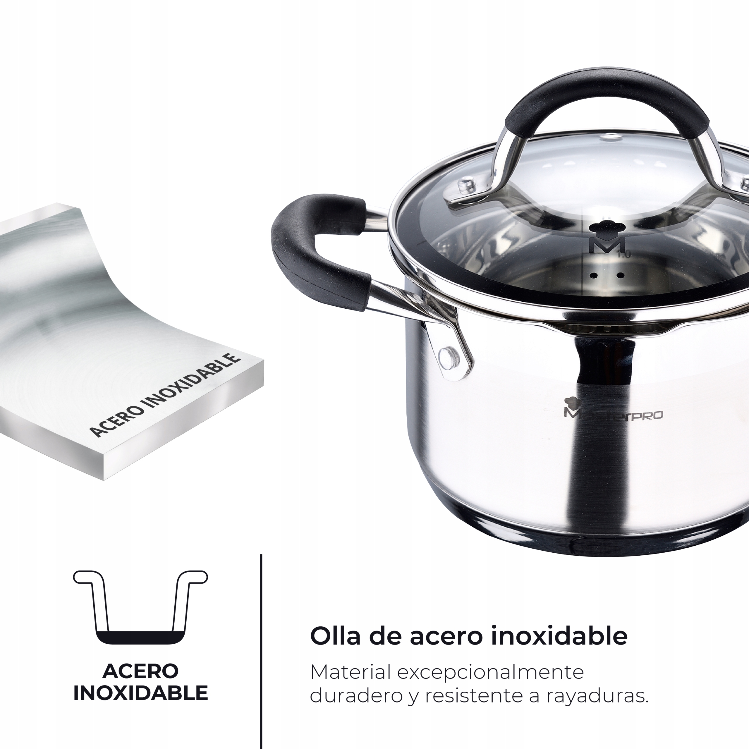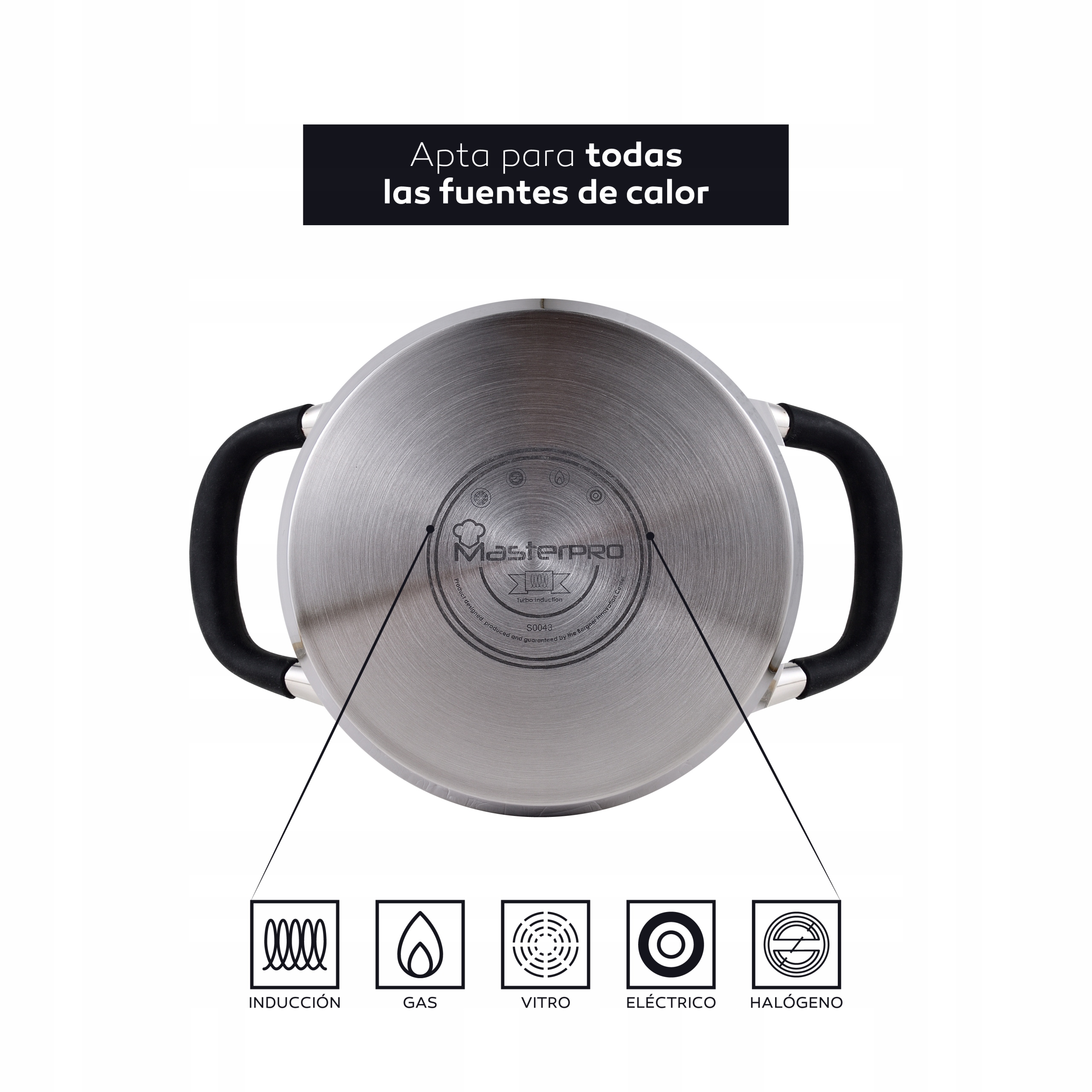 Хромоникелевой нержавеющей стали, из которой Кастрюля MasterPRO изготовлена из нержавеющей стали, прочной и долговечной.