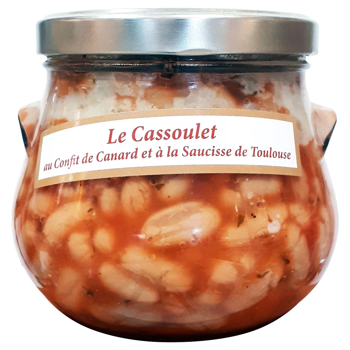 Лунго, соус ( вода, шкварки свиные, лук репчатый, томатный концентрат, модифицированный кукурузный крахмал, утиный жир, соль, экстракт птицы, зелень, перец, специи), 2 тулузские колбаски гриль 13% (мясо свинины, шпик свиной, оболочка свиная натуральная, соль, перец) , 2 утки конфи 13%. Может содержать следы глютена. Происхождение свинины и утки: Франция.