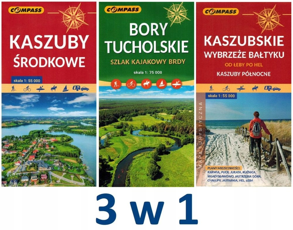 KASZUBY I BORY TUCHOLSKIE ZESTAW: 3 x MAPA TURYSTYCZNA COMPASS