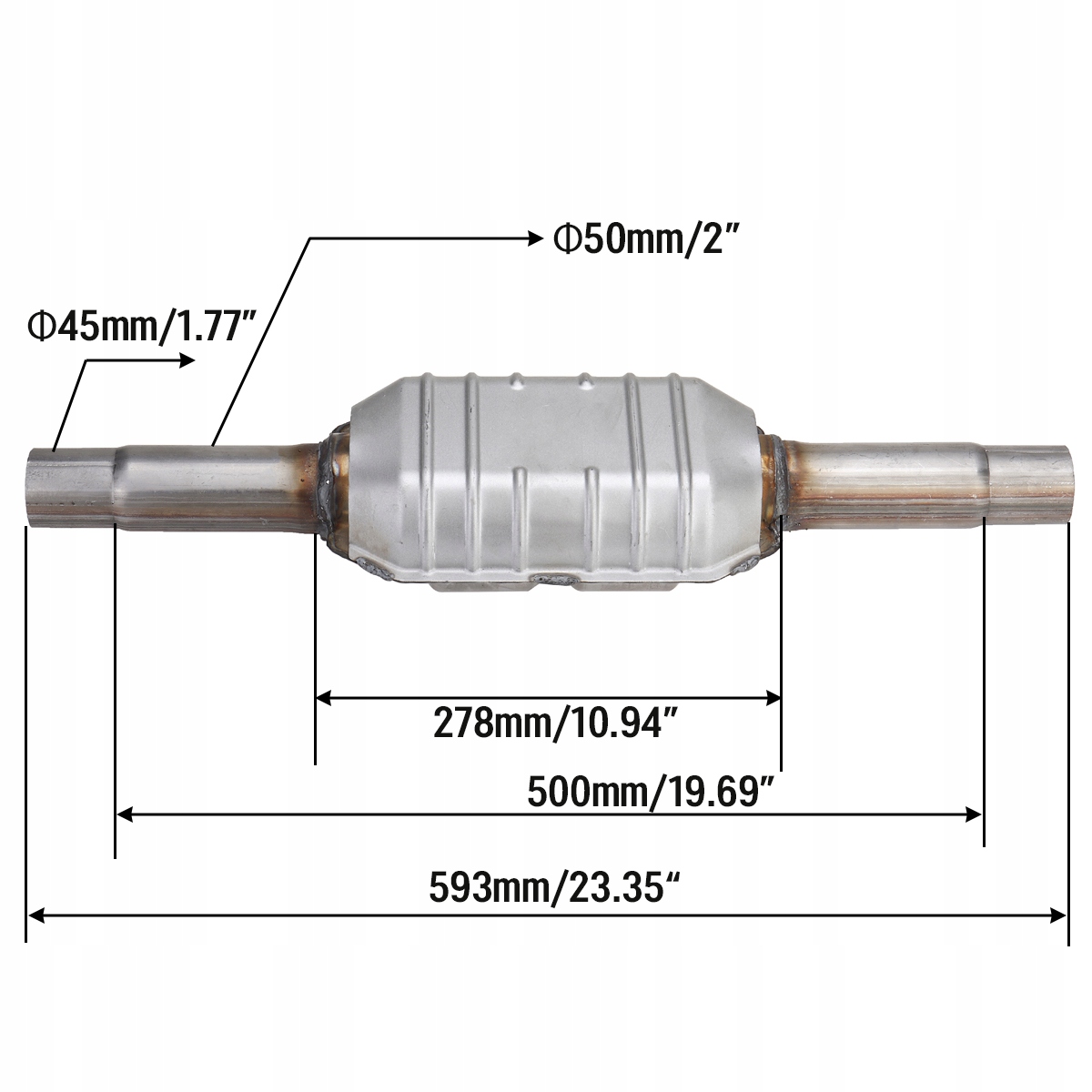 Универсальный каталитический нейтрализатор выхлопных газов из нержавеющей стали 45/50 мм