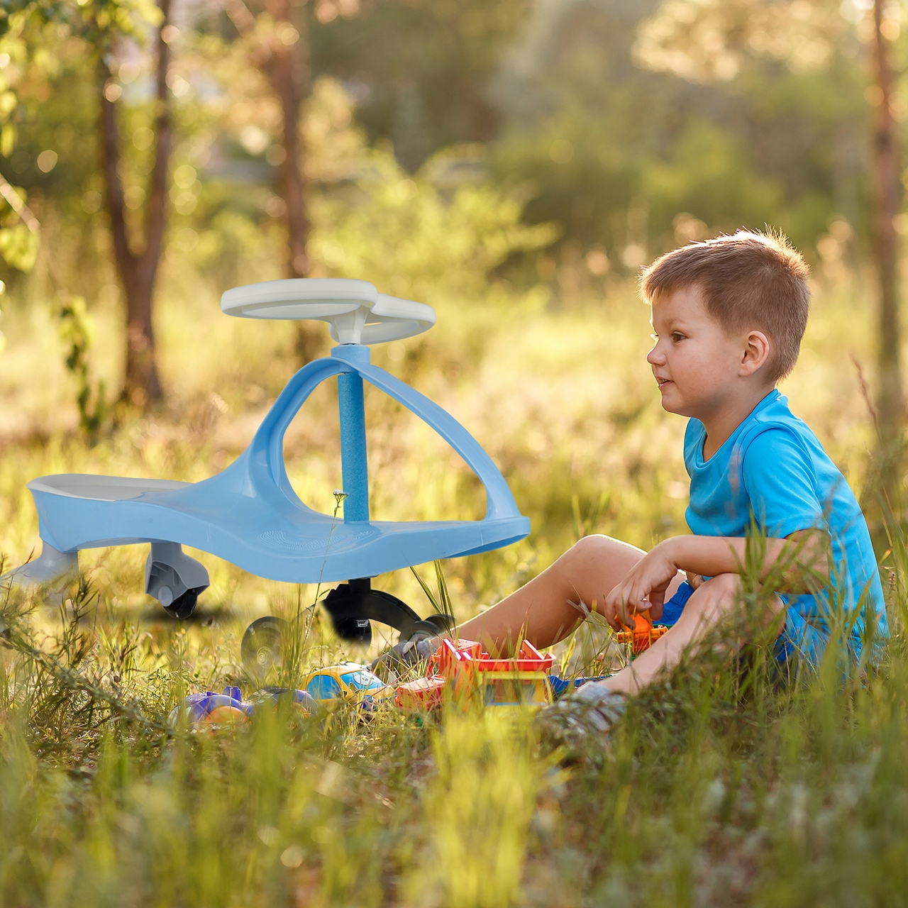 Чтобы начать движение, достаточно попеременно повернуть руль влево и вправо. Силы мышц малыша достаточно, чтобы начать отличное развлечение! Также автомобиль имеет широкое профилированное сиденье и нескользящие опоры на сидении, что повышает комфорт вождения. Дополнительным преимуществом являются светящиеся колеса, которые делают развлечение более привлекательным, а также делают поездку более заметной.