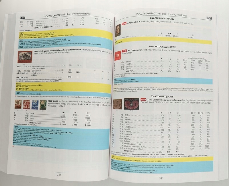 Объём около 738 страниц, мягкий переплёт, ламинированная обложка. Богато иллюстрированное издание с актуальным прайс-листом на польские марки.