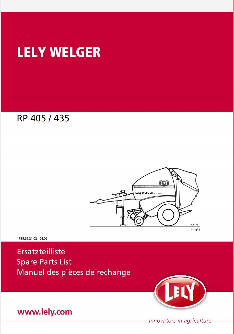 Каталог запчастин до прес-підбирачів LELY WELGER RP 405 435