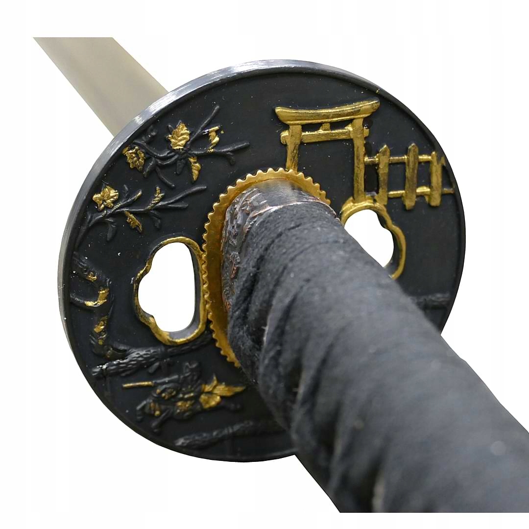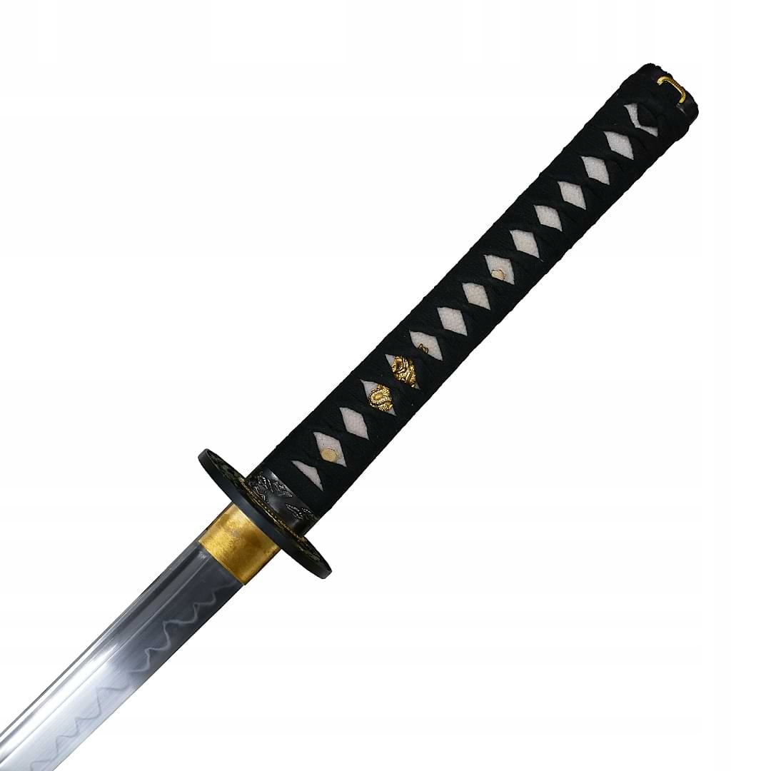 Катана Акито уникальна благодаря своему лезвию, обработанному вручную после ковки. Лезвие Akito изготовлено из закаленной глиной углеродистой стали 1045 с настоящей линией хамона или темперы, называемой узором на кромке. Клинок имеет дополнительную канавку, т. е. канавку - привет, для ее усиления. Цука, то есть ручка, имеет черную оплетку, обшитую настоящей кожей ската Манта под оплеткой, с традиционным натяжением, с шипами, два Мекуги и Менуки характеризуют первоклассную копию. Цуба, то есть перекладина, богато декорирована, покрыта черной порошковой краской и покрыта золотом, чтобы подчеркнуть дизайн. Вся катана сделана очень тщательно. Катана комплектуется деревянными черными лакированными ножнами с оплеткой. Дополнительно чехол из черной ткани.