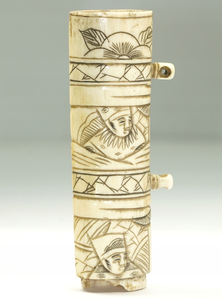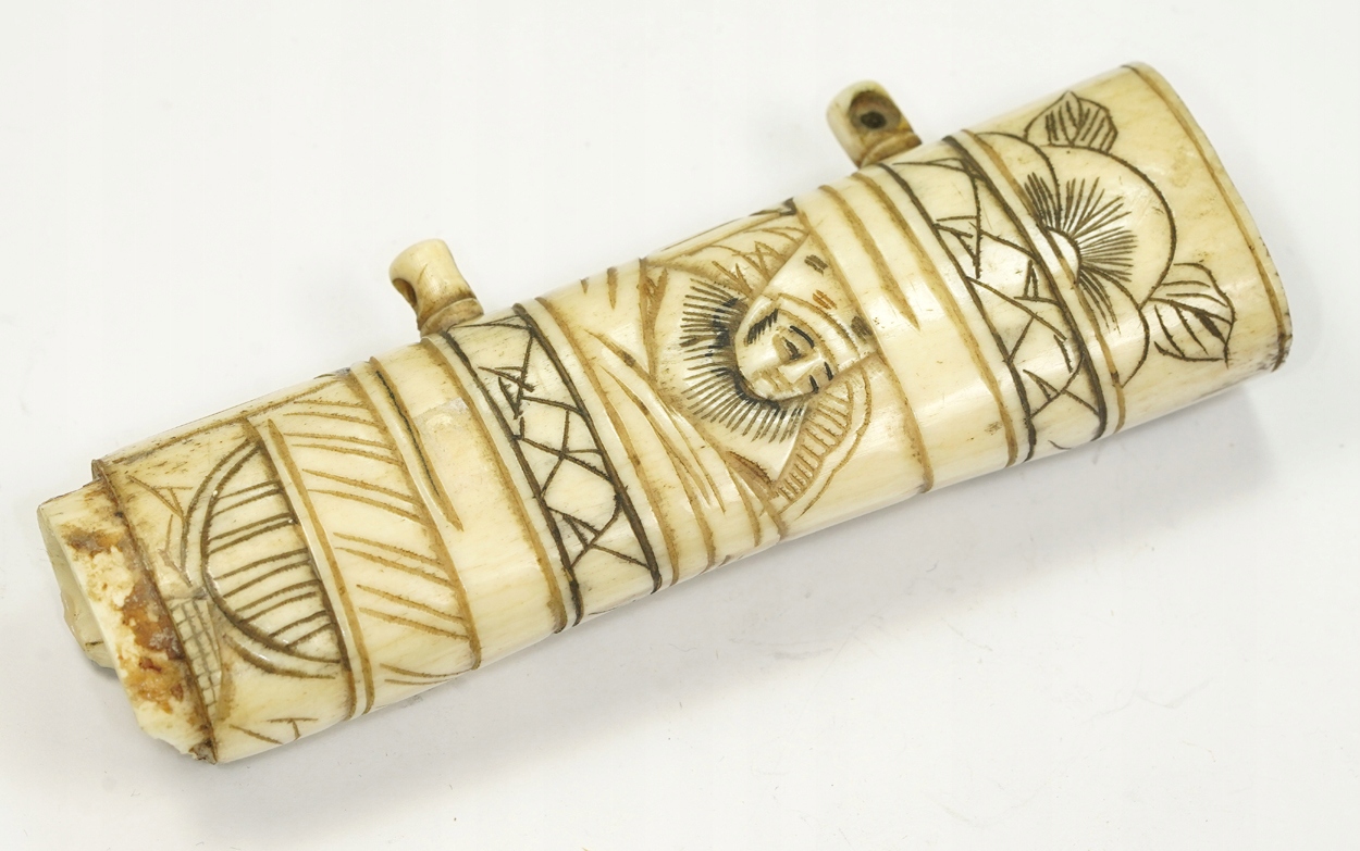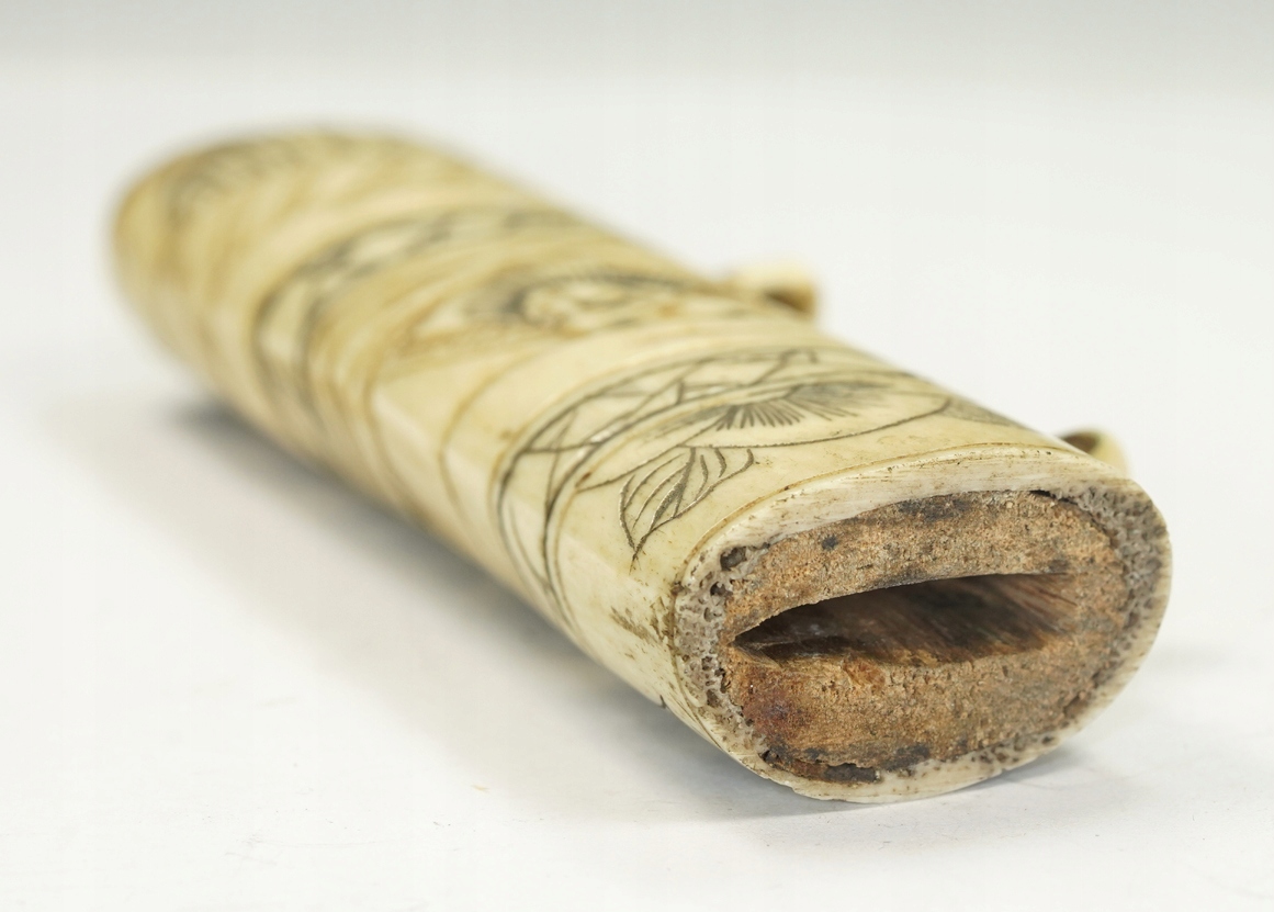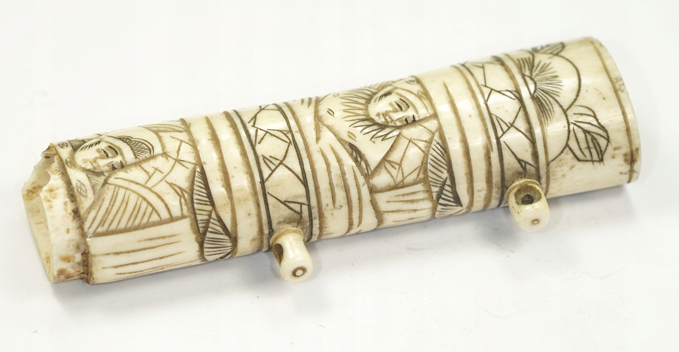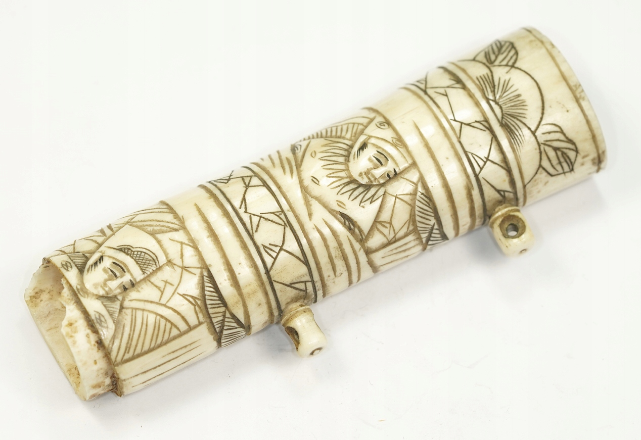 Оригинальная, исключительно красивая рамка рукоятки самурая Вакидзаси XIX века, кость животного, ручная резьба, размер: общая длина 11,5 см, ширина рамки 3,3 см, Состояние хорошее, небольшое повреждение защитной крышки, отсутствует верхняя крышка. Рекомендую, оригинальная, очень редкая вещь по очень доступной цене. Чрезвычайно интересный редкий оригинальный предмет. Состояние Прекрасно видно на фотографиях в описании аукциона.