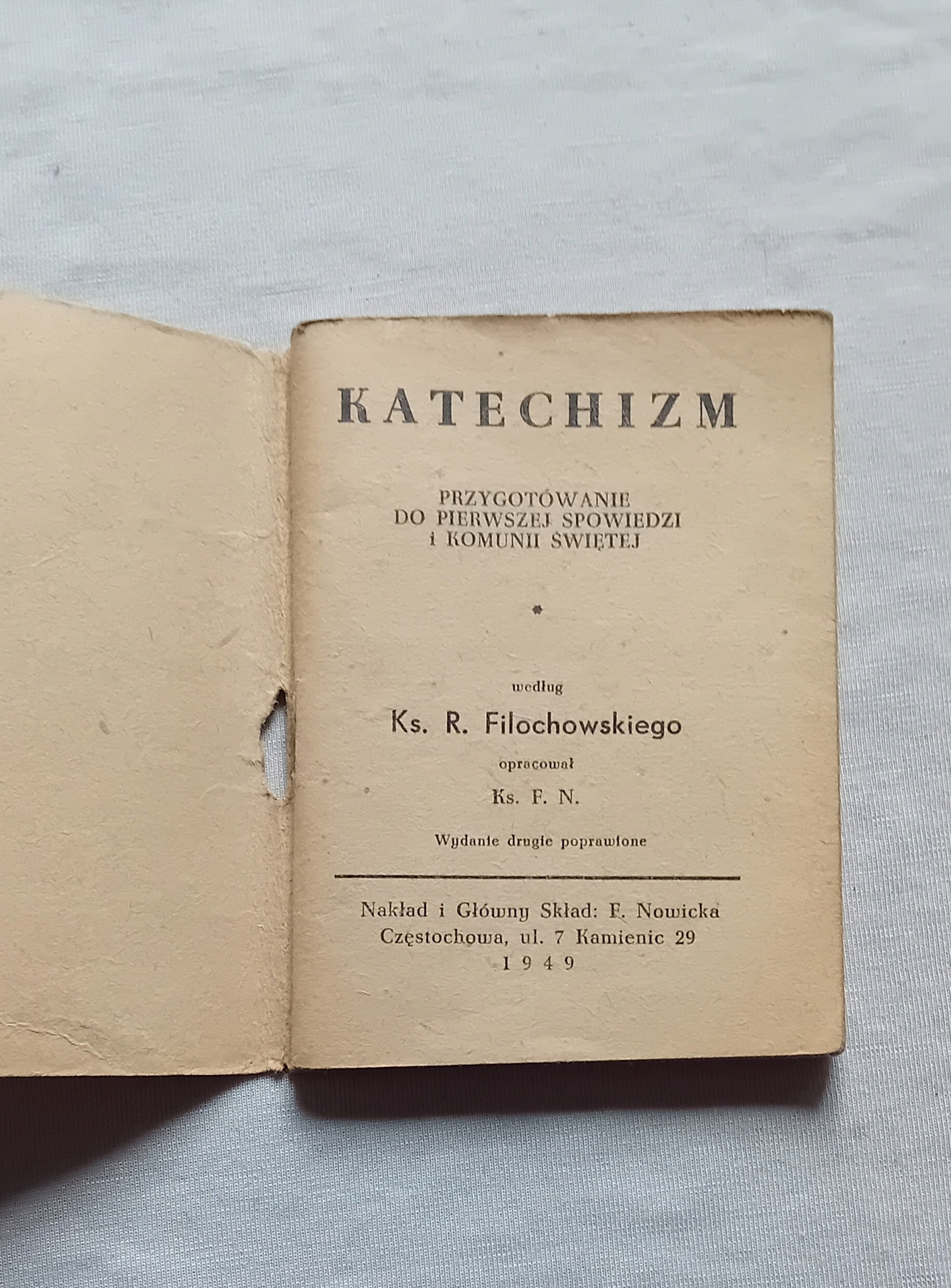 Я продам книгу: катехизис по о. Р. Филоховски. Издатель: Drukarnia F. Nowicka - Częstochowa. Издание II, 1949 Мягкая крышка, страницы 96. Pocket Edition. Выпуск из 30 000 экземпляров. Среднее состояние. Жадность, с ссадинами. Обложка углов и части карт согнуты. Подчеркивая текст, сделанный карандашом. Фотографии показывают факты