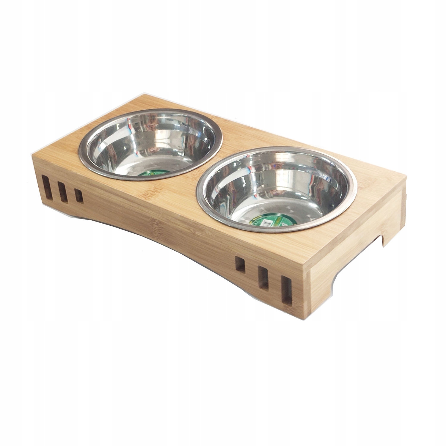 ✴ Двойная чаша подставка для животных, изготовленных из бамбука + набор из двух мисок из нержавеющей стали