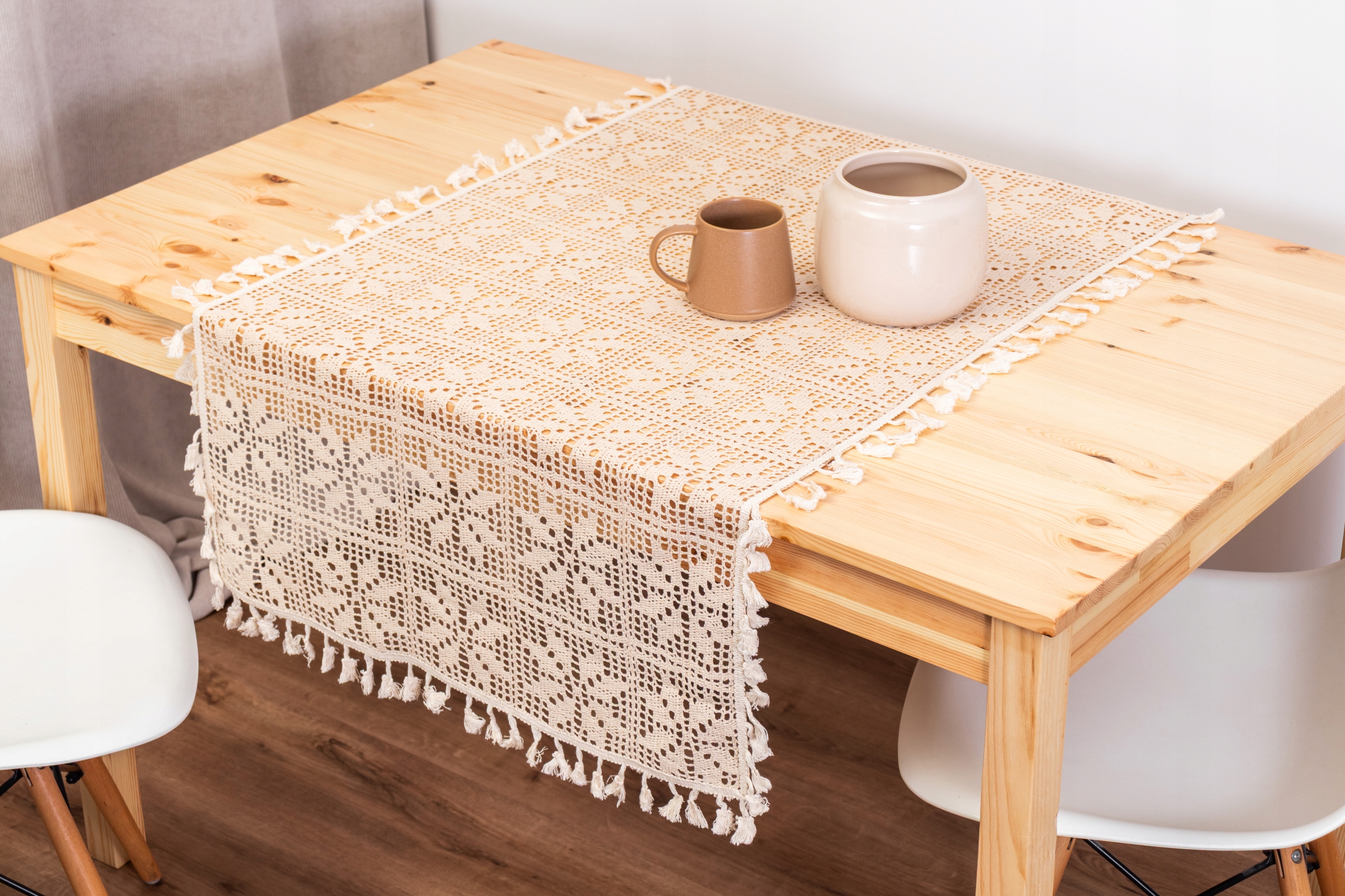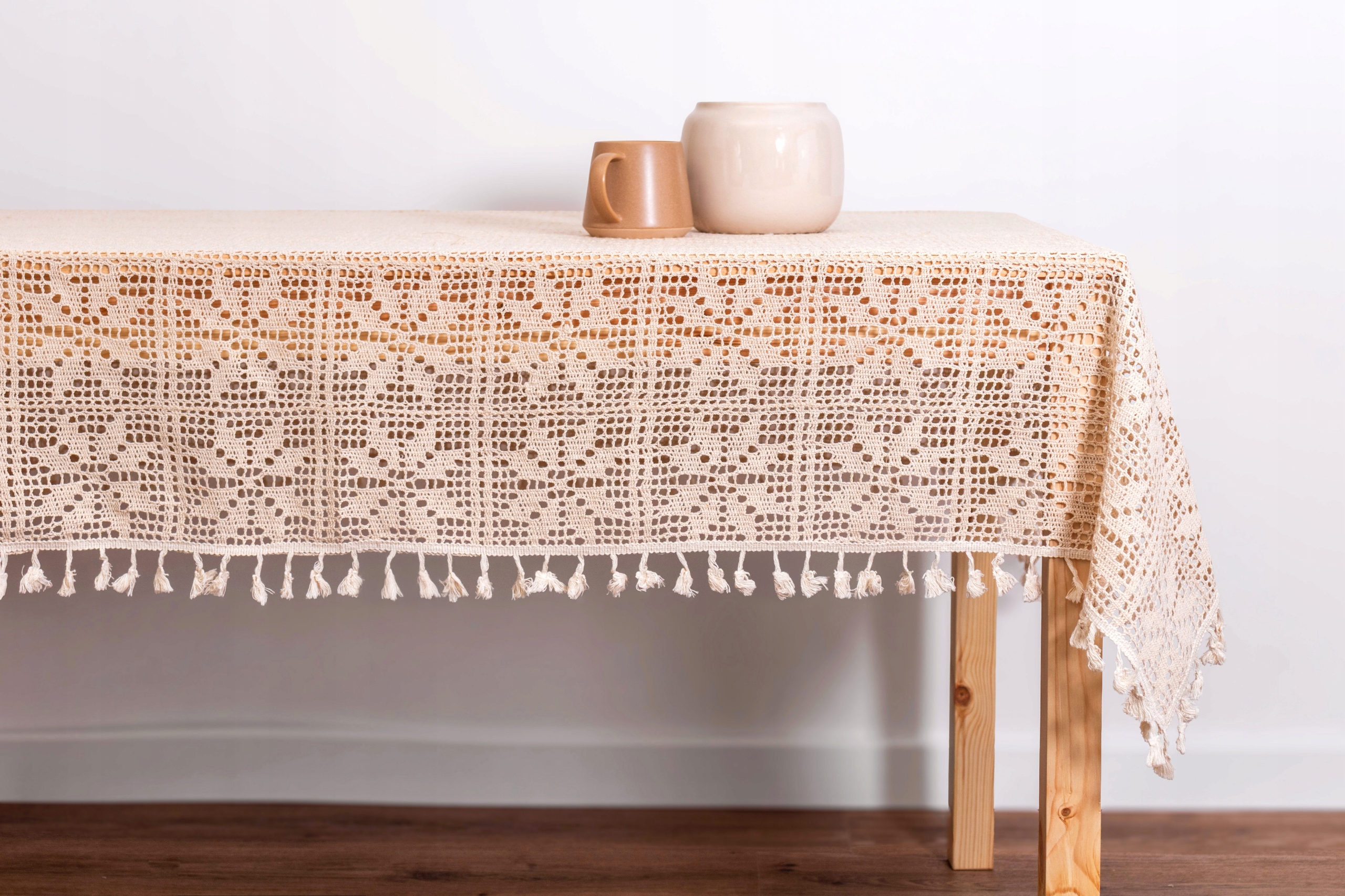 Treat Crochet Tablecloth для бежевого хлопкового таблицы 40x90 Натуральная для скамейки