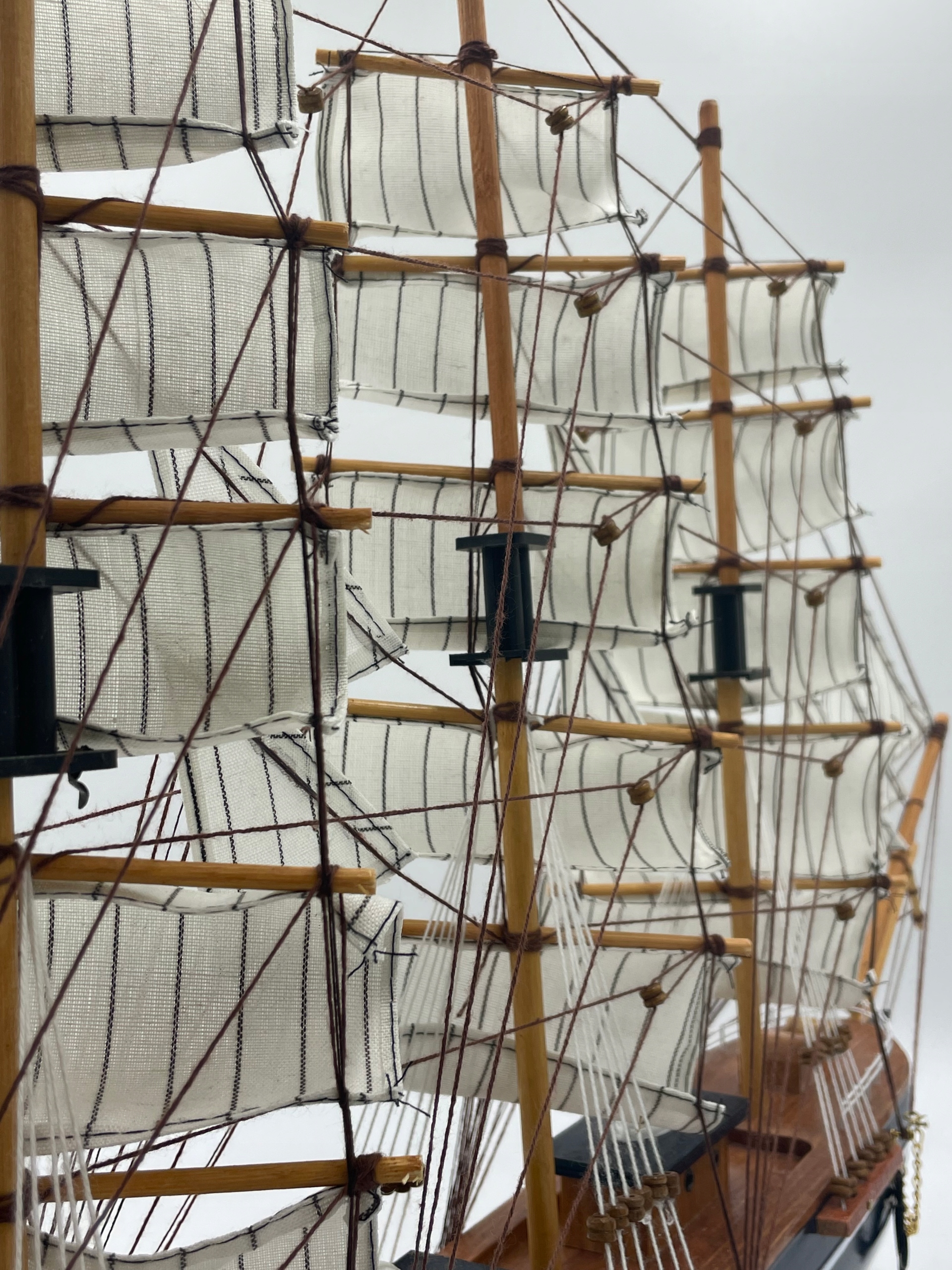 Уникальная модель парусного корабля ручной работы, изготовлена из дерева, паруса из холста, дополнительно модель имеет такелаж.