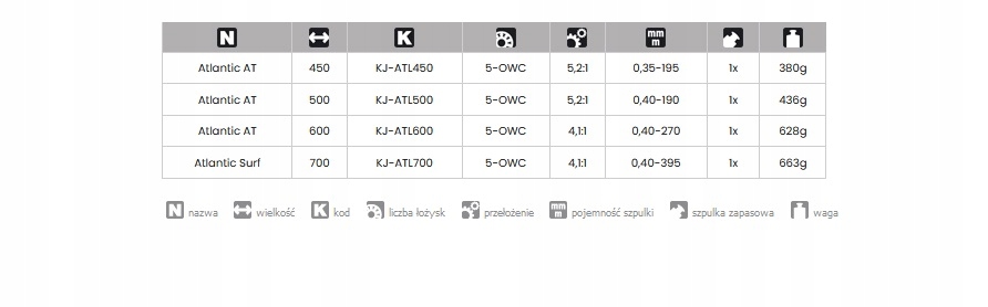 ATLANTIC Серия больших и очень больших катушек, разработанных специально для морской рыбалки, в том числе с морского берега. Альтернативное использование для ловли сома. Мы предлагаем 2 версии: AT размерами 450, 500, 600 и самый большой SURF размером 700. Усиленный 5-опорный механизм, металлический кривошип увеличенного сечения. Углубленная дюралюминиевая шпуля вмещает большой запас лески большего диаметра. В комплект входит запасная катушка из твердого пластика.