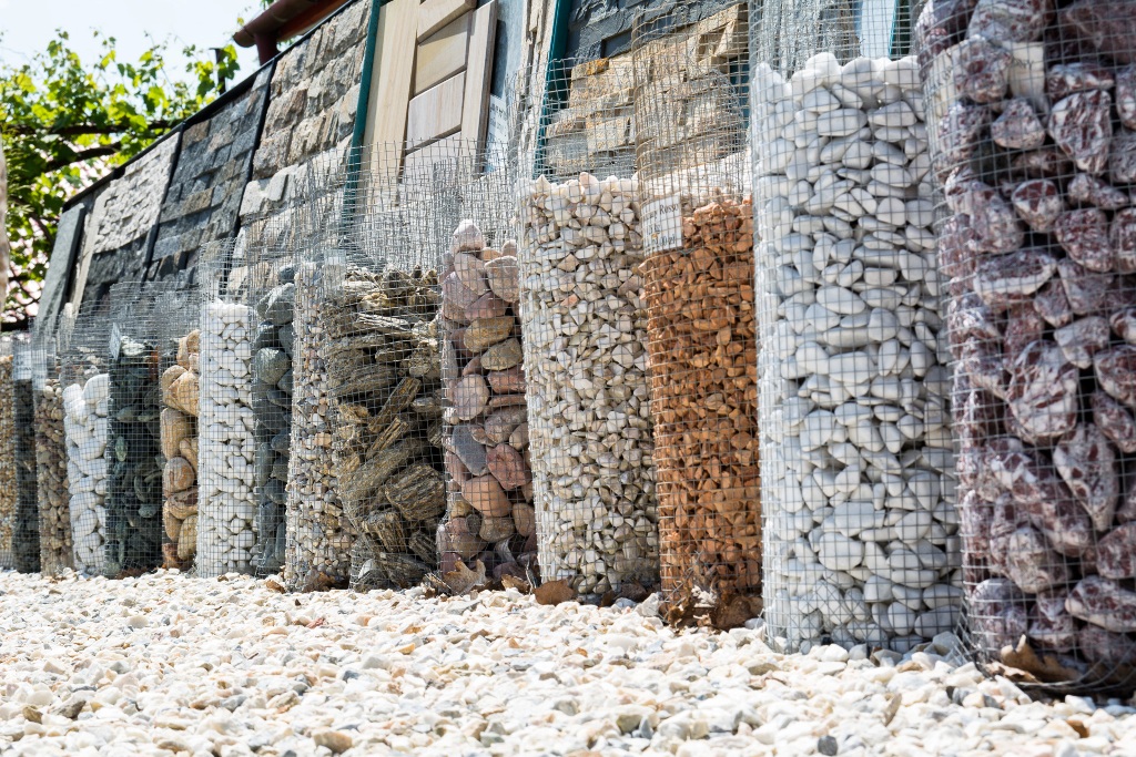 Он работает как декоративный элемент каменных садов, переулков, дорожек, границ вокруг дома, в габионах используются более толстые фракции.
