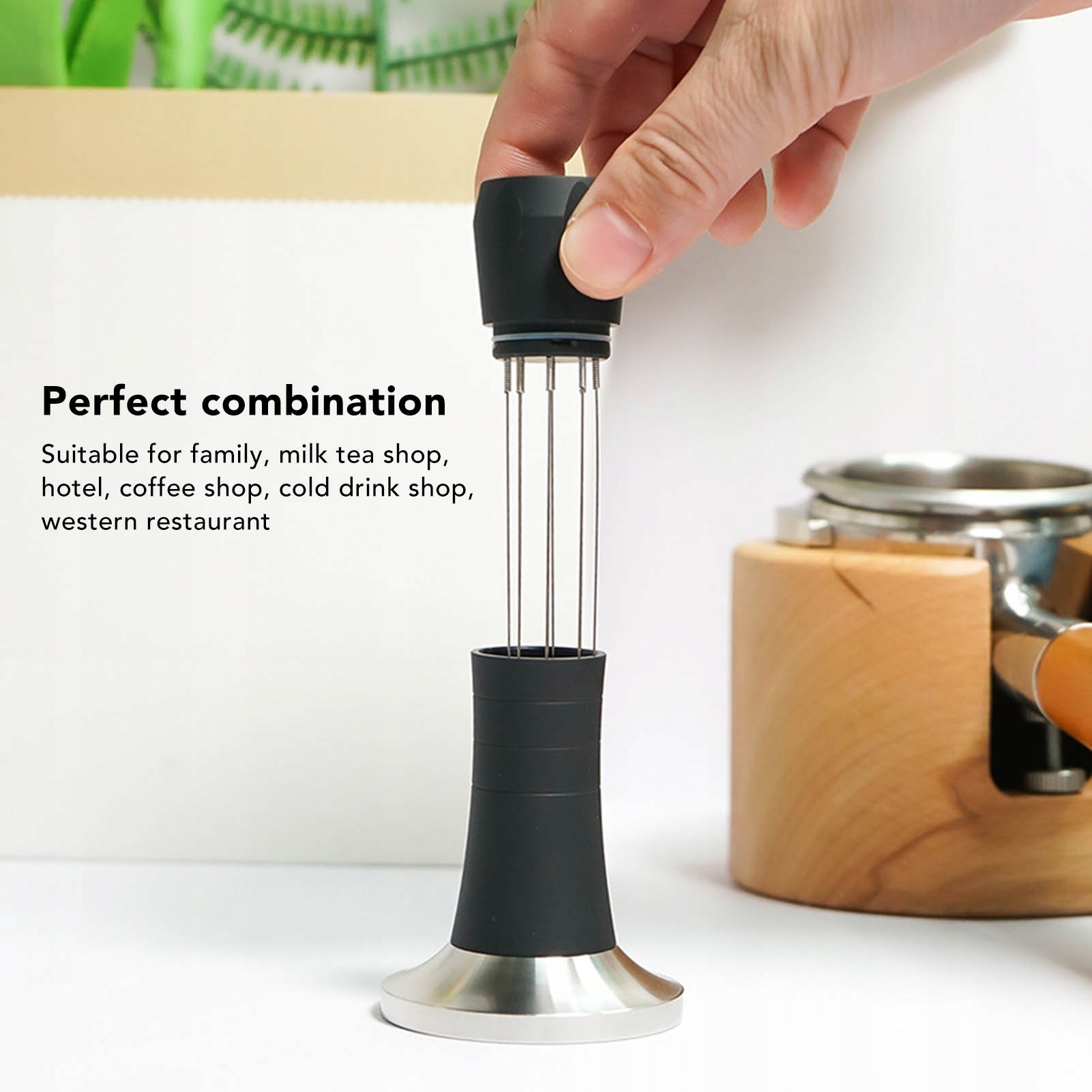 3. Материал теплопроводности: изготовлен из алюминиевого сплава, этот породочный датчик обладает хорошей прочности и термической проводимостью, которые могут помочь сохранить стабильный кофе и поддерживать качество кофе. Важный элемент качества итальянского кофе. Использование этого 2 -в -1 порошкового молота может помочь баристам лучше контролировать гомогенность и утолщение кофейного порошка, тем самым улучшая вкус и консистенцию кофе
