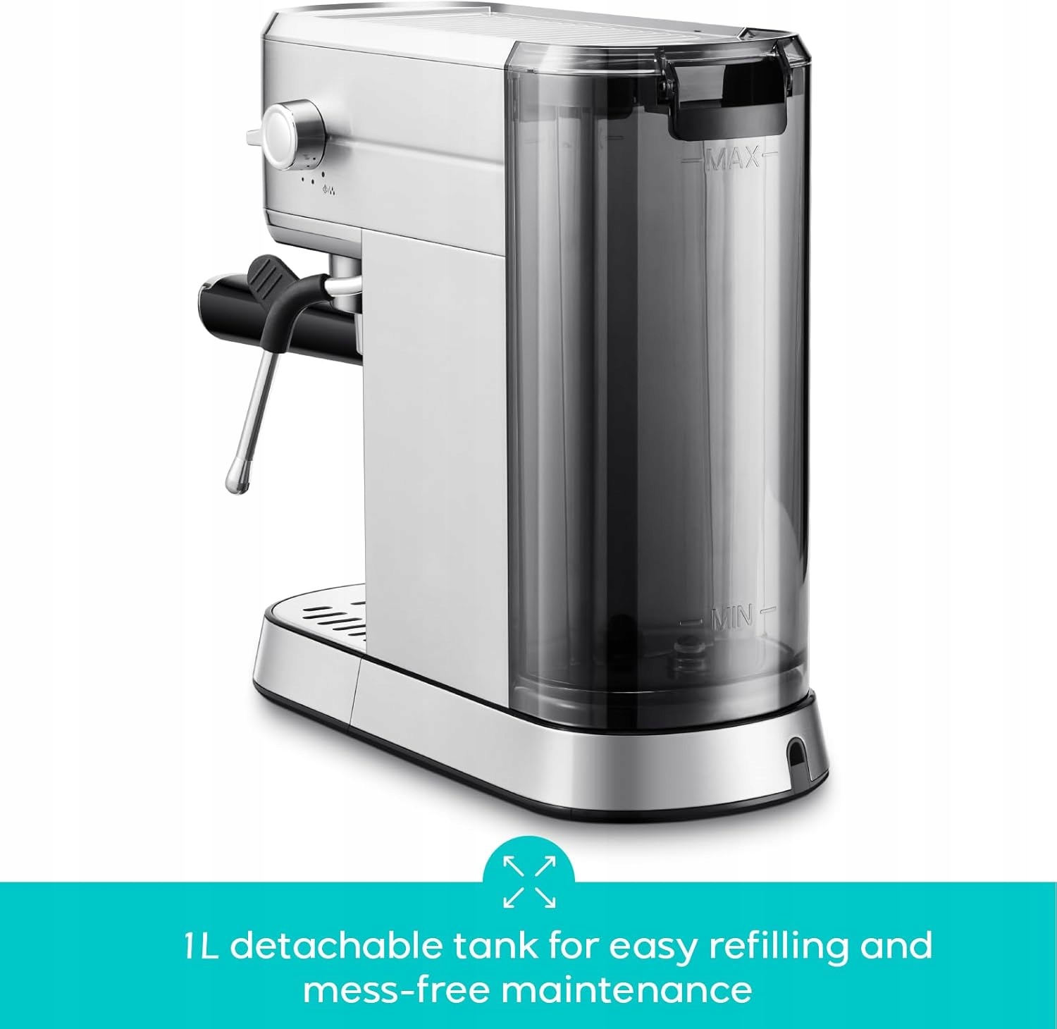 - Компактный, стильный и практичный: Красивый и компактный дизайн делает эту небольшую кофемашину подходящей для любой кухни. Приготовьте одинарный или двойной эспрессо с красивой пенкой всего за несколько минут! Резервуар для воды емкостью 910 мл позволяет заваривать несколько чашек и легко снимается для дозаправки.