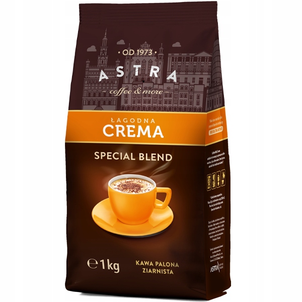 <р> Кофейные зерна Astra Mild Crema Special Blend, характеризующиеся бархатистое тело, шелковистый крем и приятный аромат с нотками. орех и мед. <р> Кофе производится по технологии PURE ROASTING. МЕТОД. Постоянно поддерживаемая чистая атмосфера внутри жарочной печи гарантирует 100% чистый вкус и аромат кофе. Для отметки уровня содержание кофеина в нашей продукции подтверждено лабораторией Дж.С.ГАМИЛЬТОН!Информация: