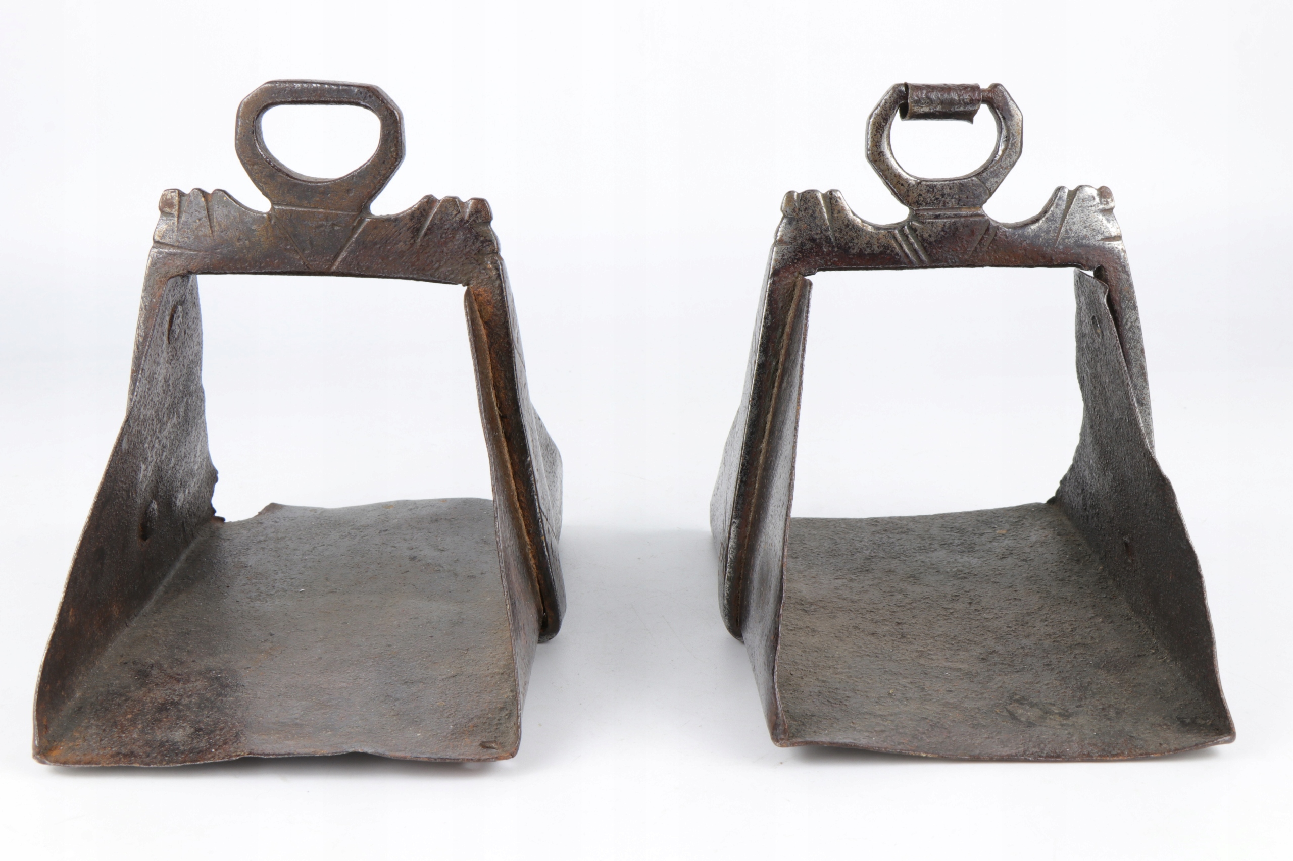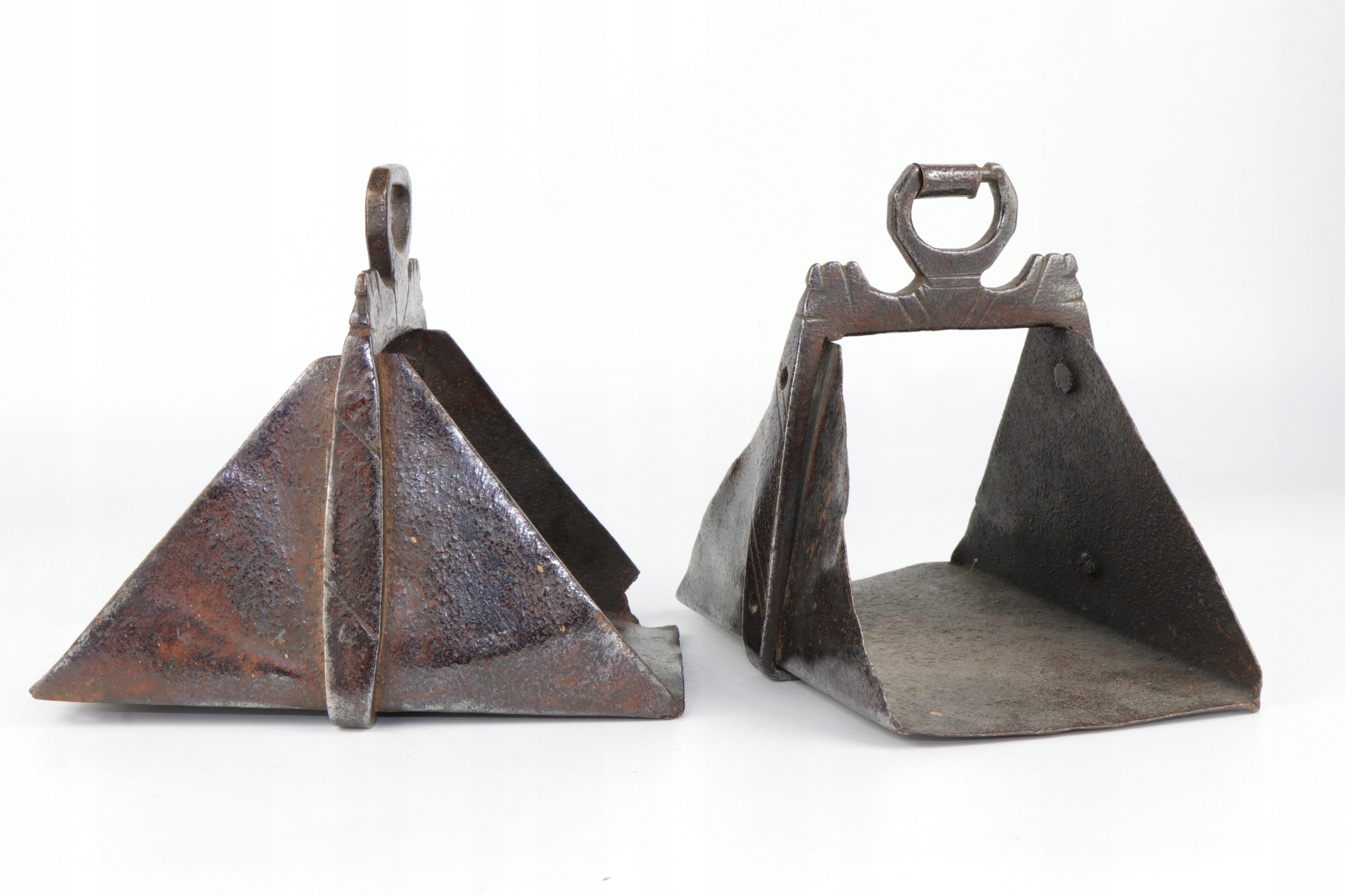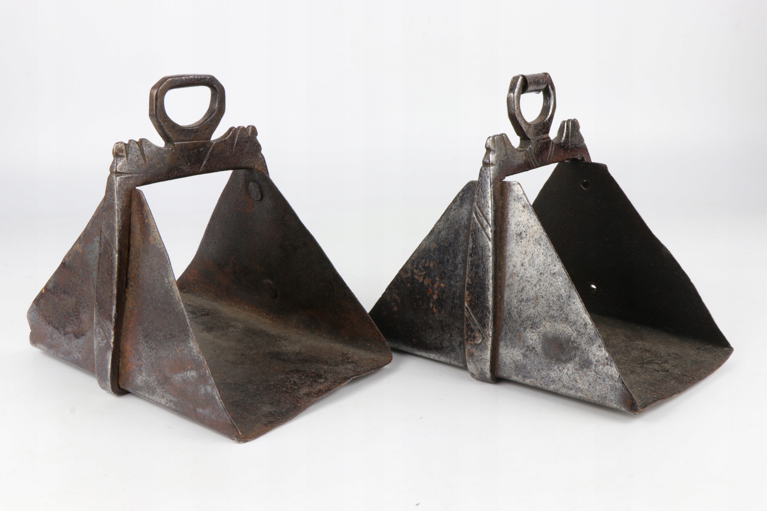 интересная кавалерия коллекционера испанские стремительные стремицы 18 -го века. Очень интересный исторический объект. Жежины, изготовленные в стали с довольно простым украшением. Элементы в сочетании вместе с заклепками.