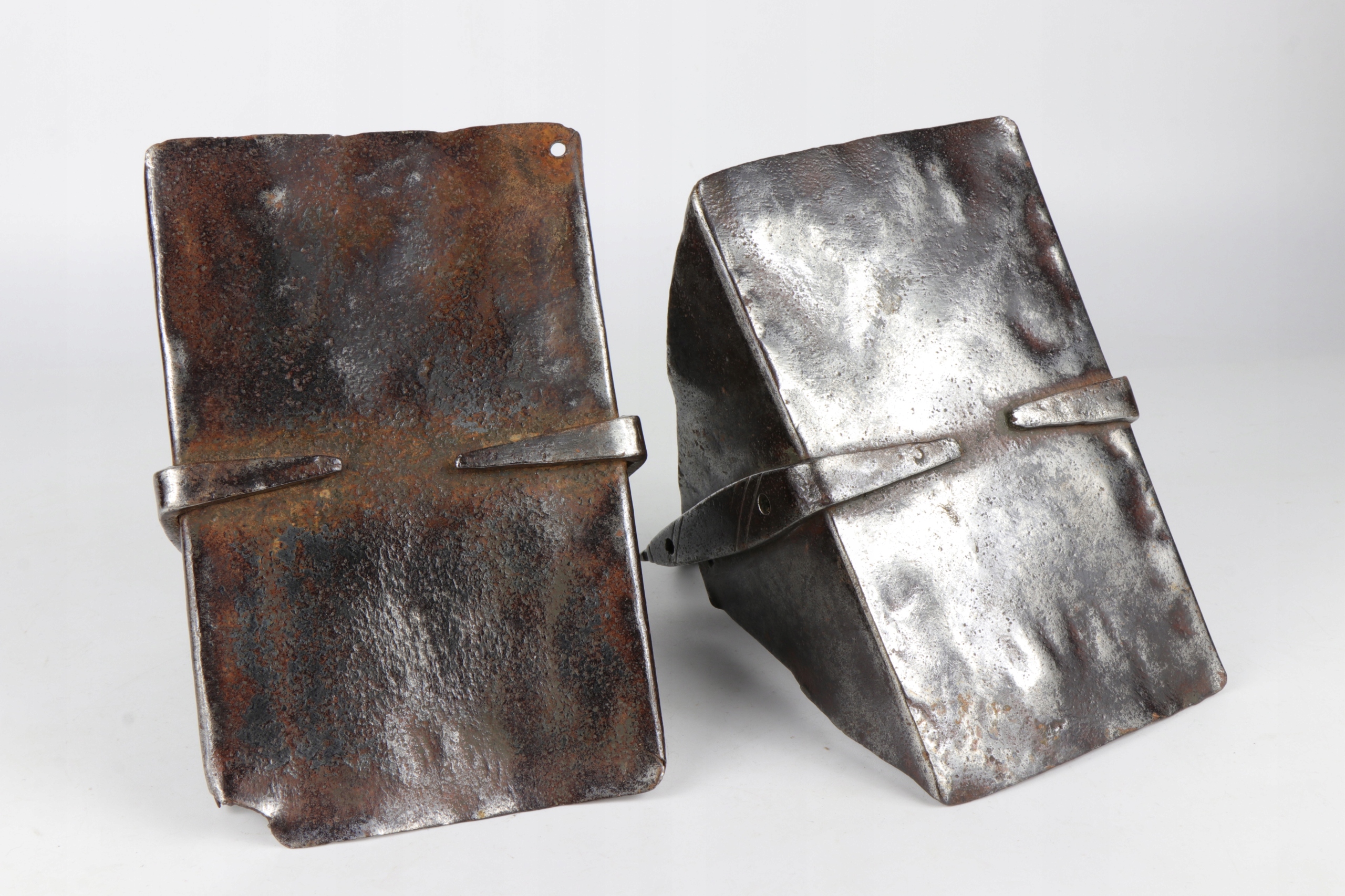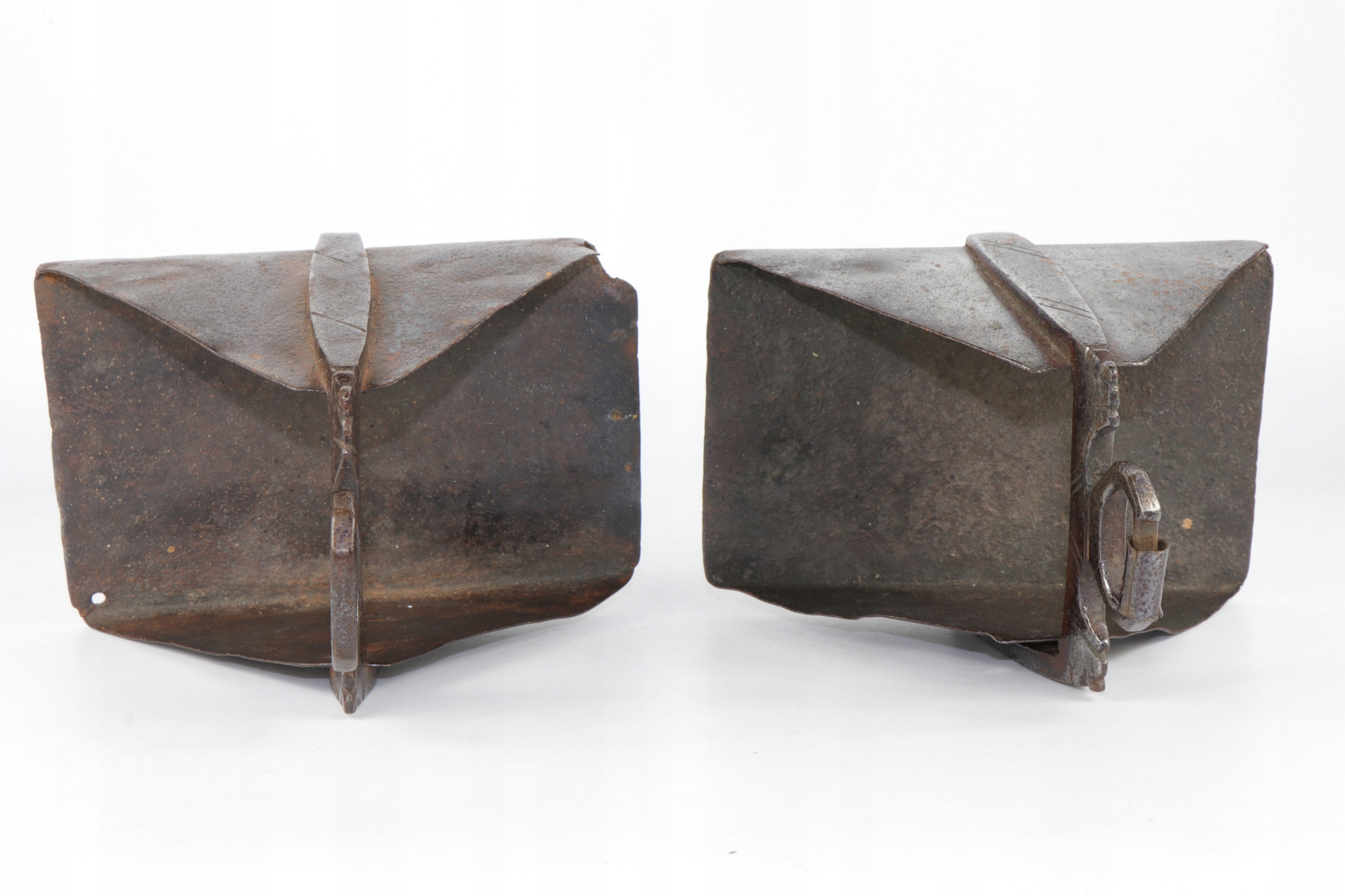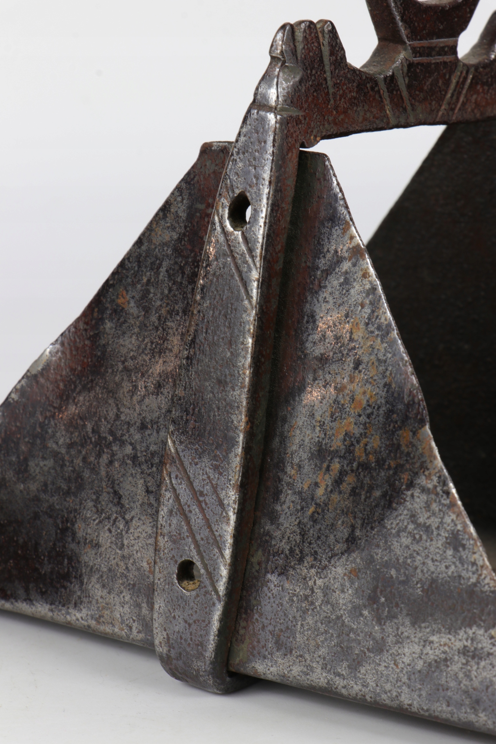 интересная кавалерия коллекционера испанские стремительные стремицы 18 -го века. Очень интересный исторический объект. Жежины, изготовленные в стали с довольно простым украшением. Элементы в сочетании вместе с заклепками.