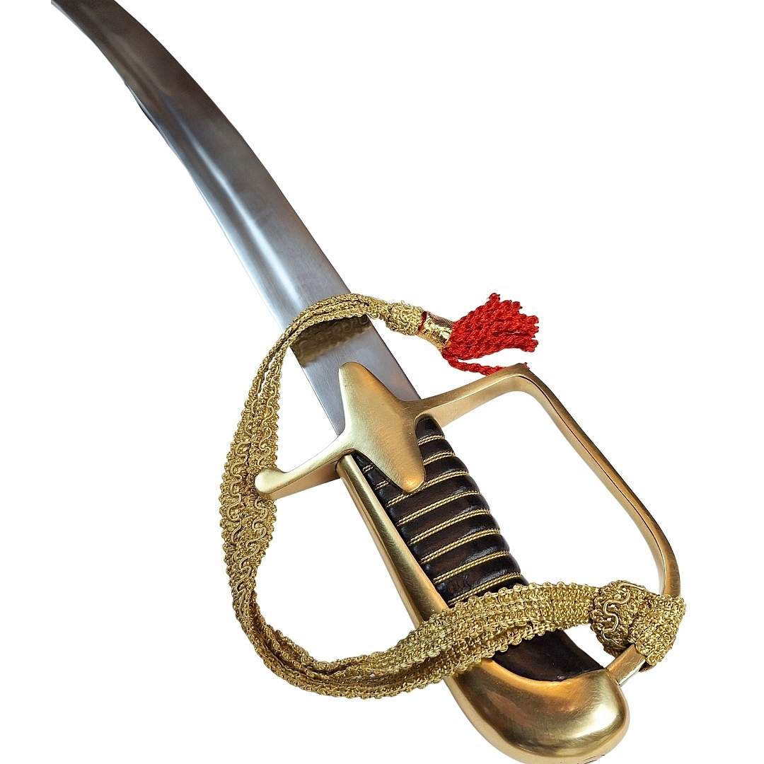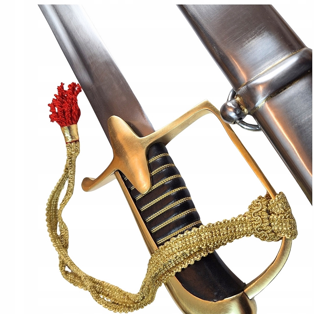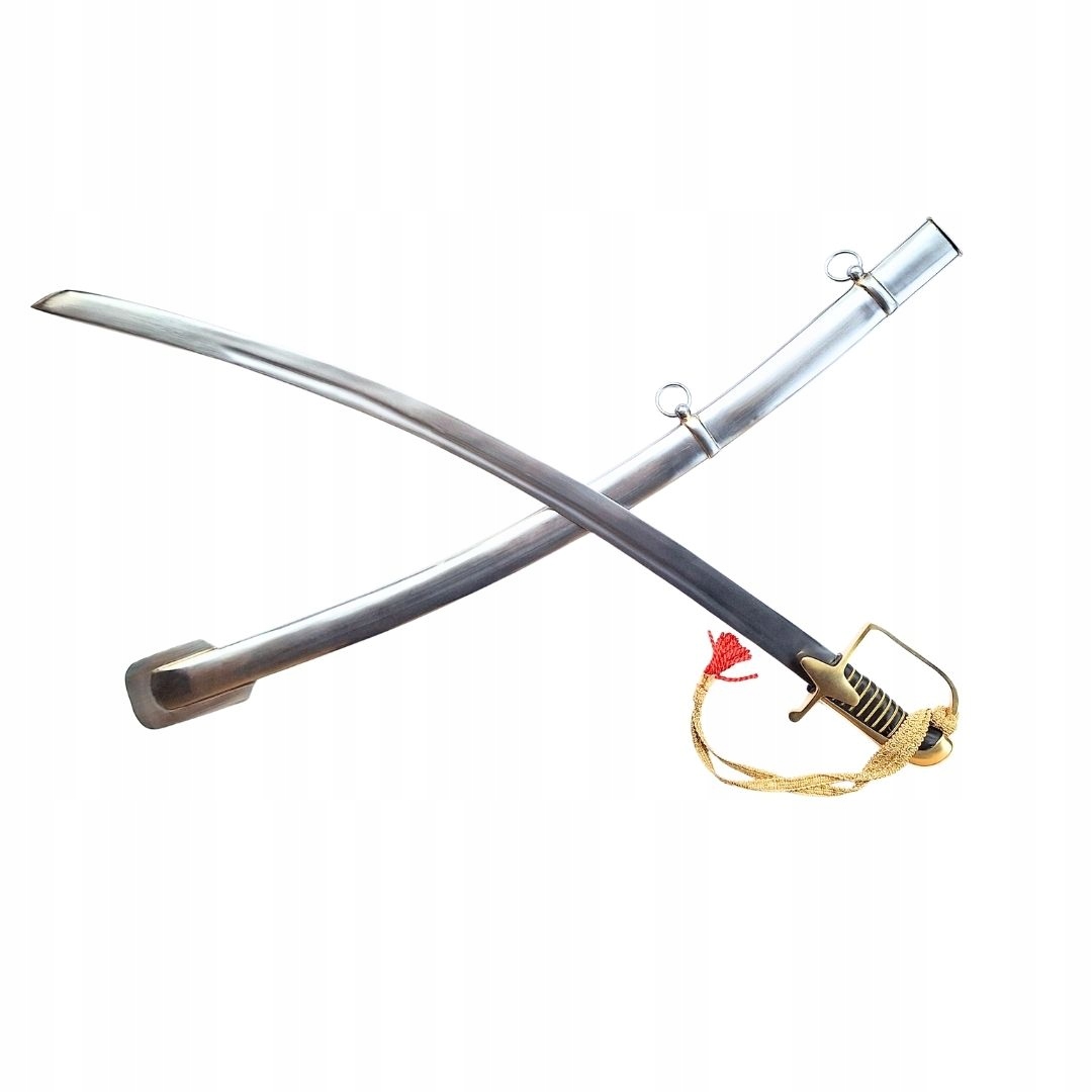 Реплика кавалерии саблы знаменитой "Радзивиллака" - оружие, используемое польскими кавалерами. Его название происходит от принца Домика Радзивил. Сабля характеризовалась тонкой и легкой структурой, адаптированной к потребностям светового вождения. Ручка из дерева, покрытая кожей, была обеспечена хорошей сцеплением, дополнительно украшенной SO Двенадцать влагалище, сделанное из хромированного металла. кг