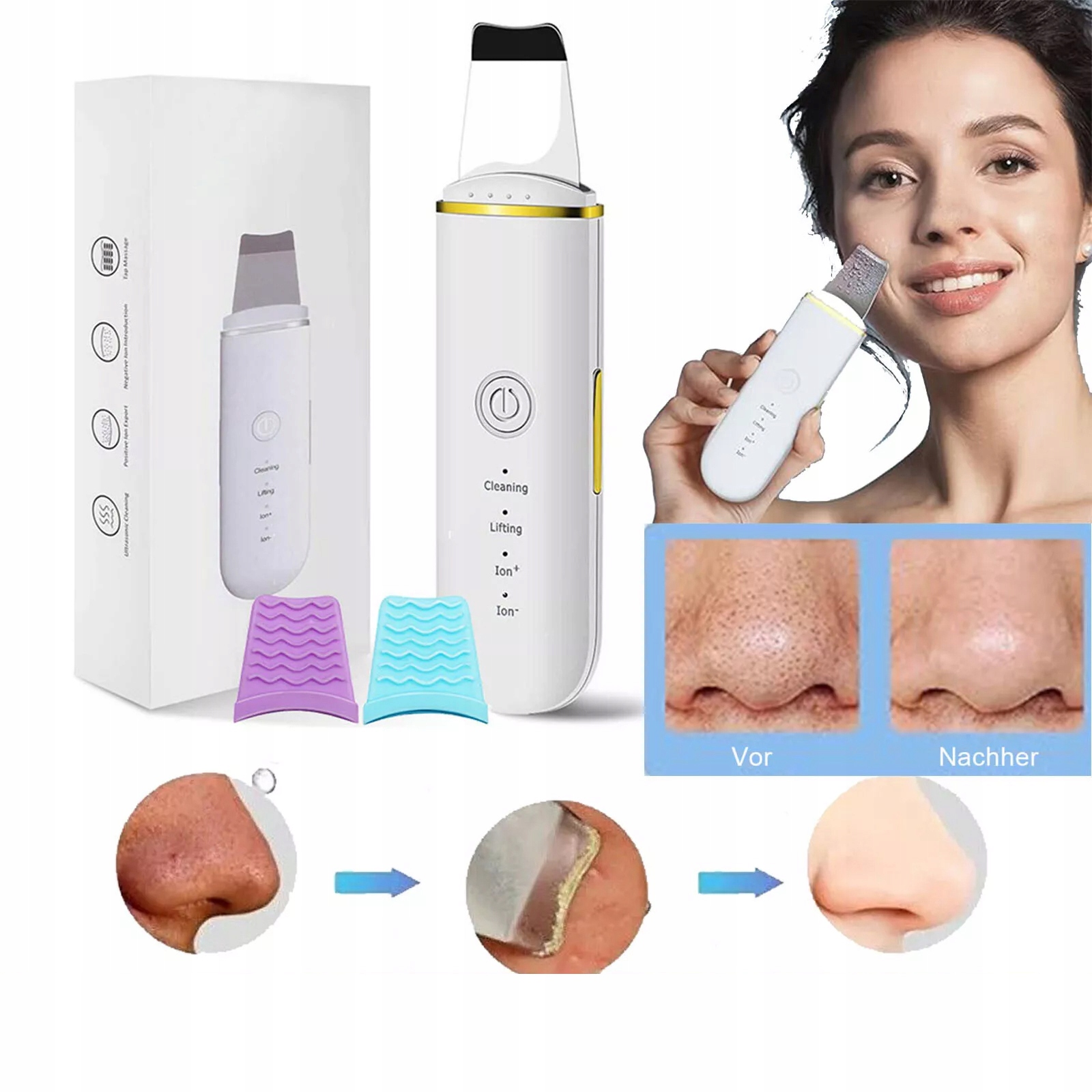💞 Ультразвуковое отшелушивание лица использует высокочастотные вибрации 24 000 Гц для глубокого очищения кожи. Это помогает мягко отшелушивать, чистые головы, головы, мертвая кожа, масло и лицевая грязь.