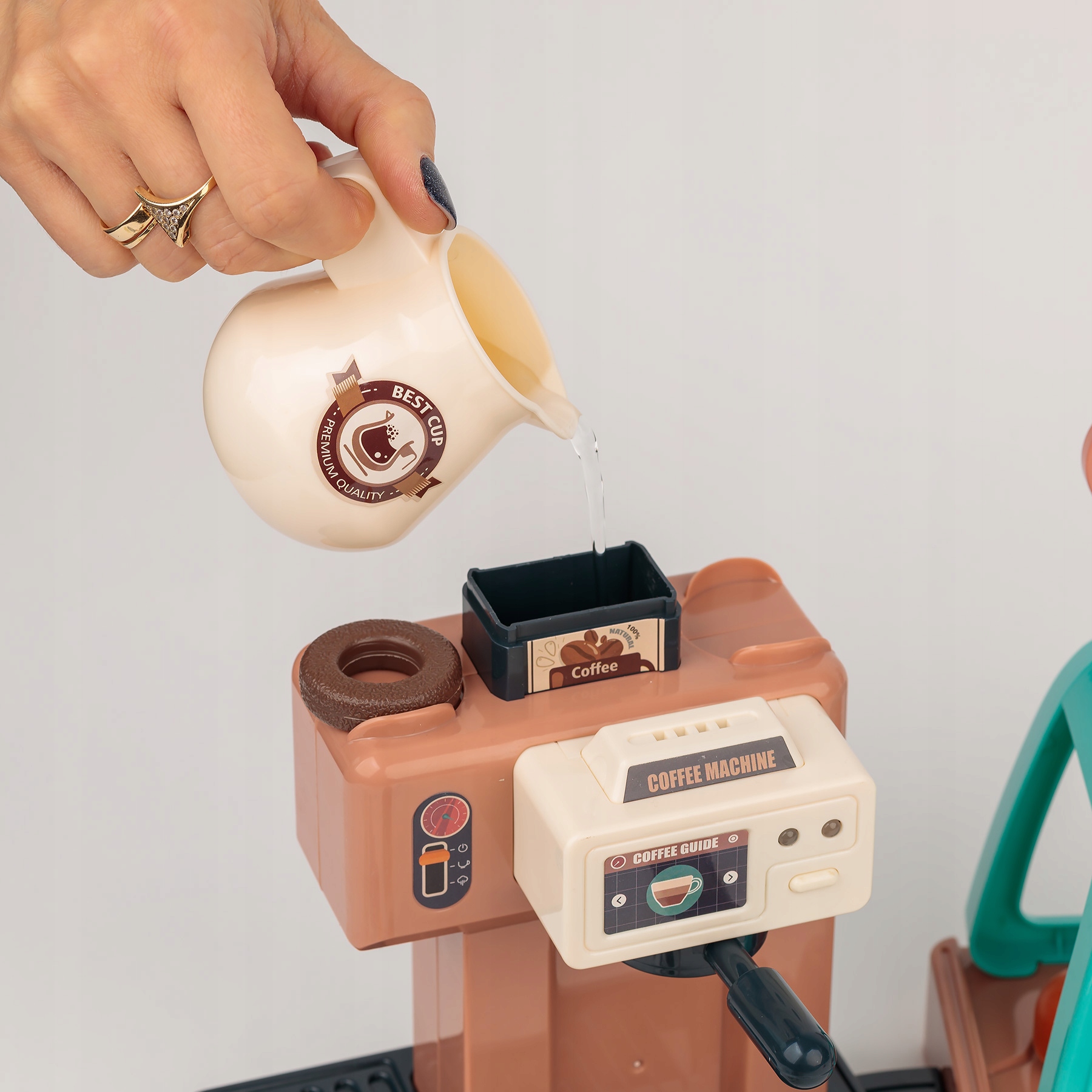 Маленький набор бариста создан для самых маленьких. Кафе с кофемашиной состоит из целых 40 элементов и содержит все необходимое, что есть в каждой кофейне. Все дети любят подражать взрослым, и благодаря нашей игрушке каждый ребенок сможет сыграть эту роль