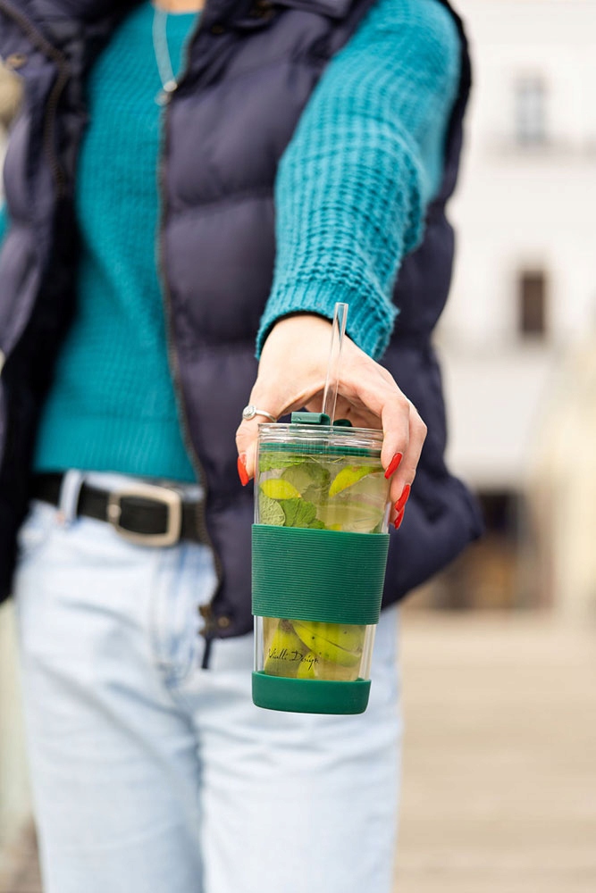 Стеклянная кофейная кружка с трубочкой Vialli Design FUORI 600мл 30398 (зеленая)