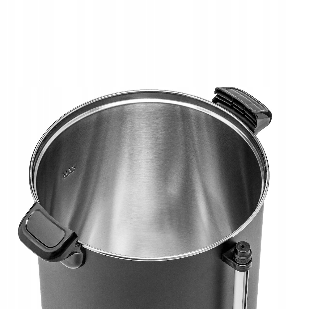 Кофеварка общей емкостью 19 л (полезная емкость – 18 л). Элегантный матовый черный цвет. Двойные стенки помогают сохранять тепло, тем самым снижая потребление электроэнергии. Кроме того, они влияют на безопасность использования из-за значительно более низкой температуры корпуса. Внешняя стенка изготовлена из стали, окрашенной в черный матовый цвет, внутренняя стенка – из высококачественной нержавеющей стали.