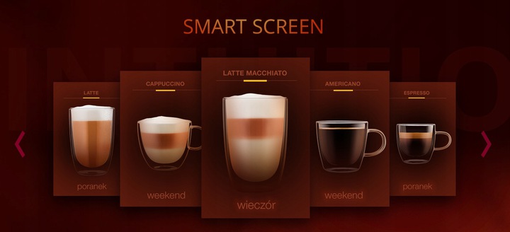 Эспрессо-машина Intuition Preference отличается удобством, интуитивно понятным управлением и полной персонализацией. С помощью сенсорного дисплея SMART SCREEN, похожего на смартфон, вы сможете легко персонализировать каждый этап приготовления кофе – его крепость, размер и пропорции.
