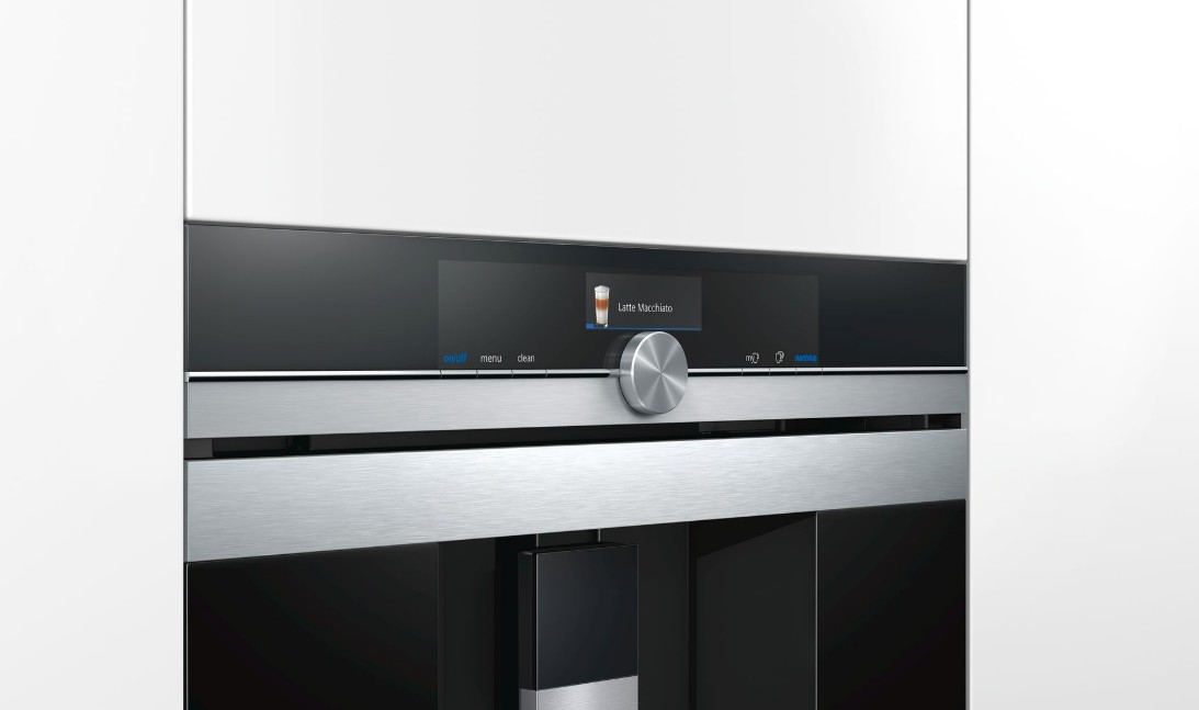 Автоматическая эспрессо-машина SIEMENS CT636LES6 с резервуаром для воды емкостью 2,4 литра и мощностью 1600 Вт. Регулировка количества завариваемого кофе, двойной дозатор, система вспенивания молока.