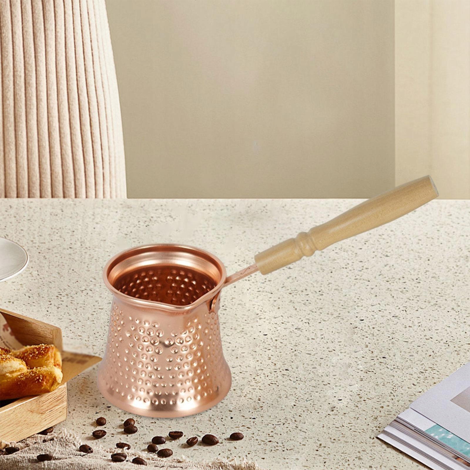 [Материал]: Этот турецкий кофейник изготовлен из толстого и утяжеленного алюминиевого корпуса и оснащен стильной дубовой ручкой для удобства использования.