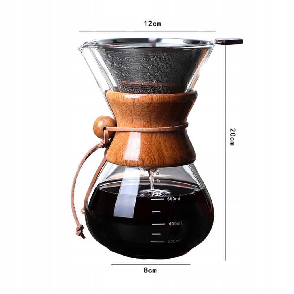 Капельная кофеварка на 21 унцию, многоразовая противоожоговая деревянная ручка, прозрачная, 600 мл, с фильтром
