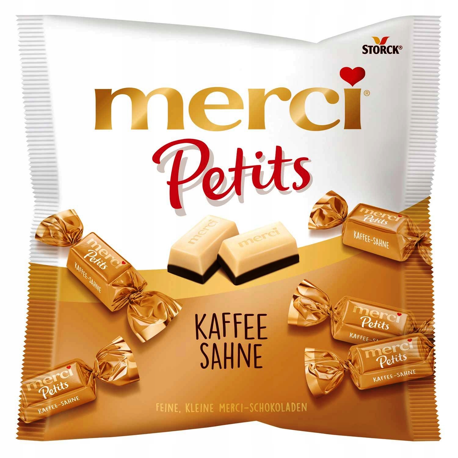Merci Petits дарит двойное удовольствие. Потому что пралине изготовлены из лучшего белого шоколада, который покрыт восхитительным кофе и шоколадно-сливочным кремом.