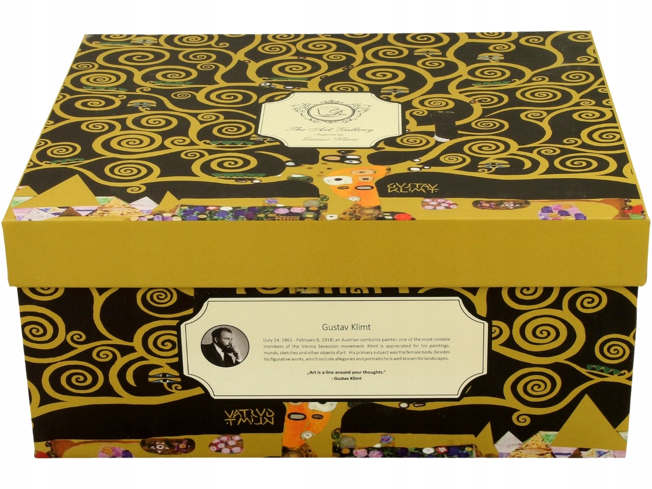 - Две чашки и блюдца украшены репродукцией картины Густава Климта «Древо жизни».