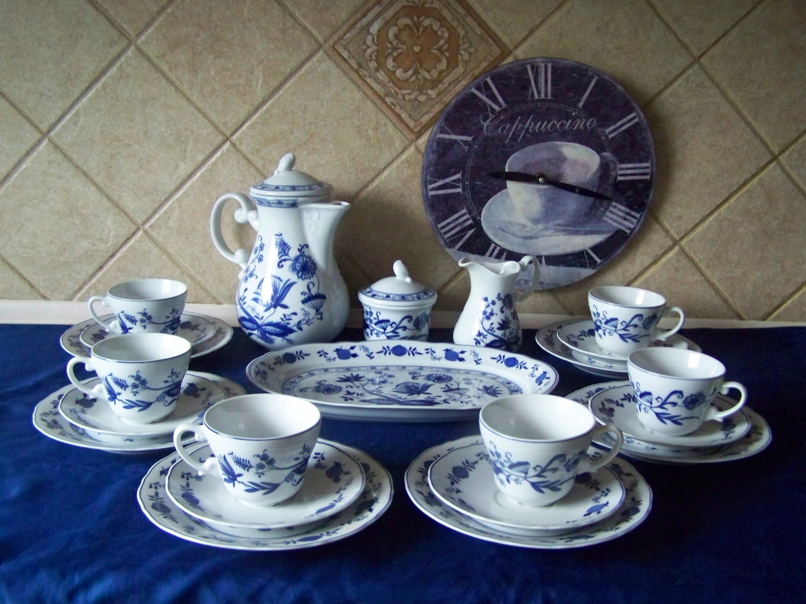 белый фарфор, декорированный луковичным узором