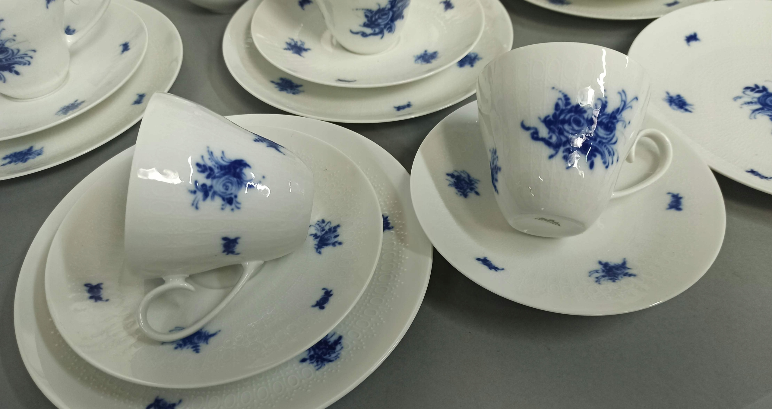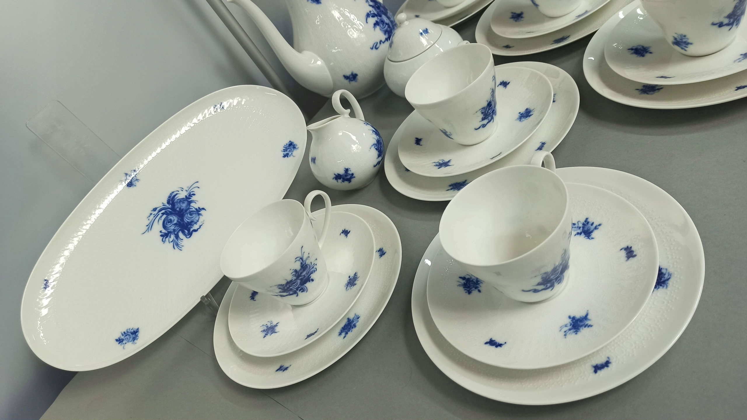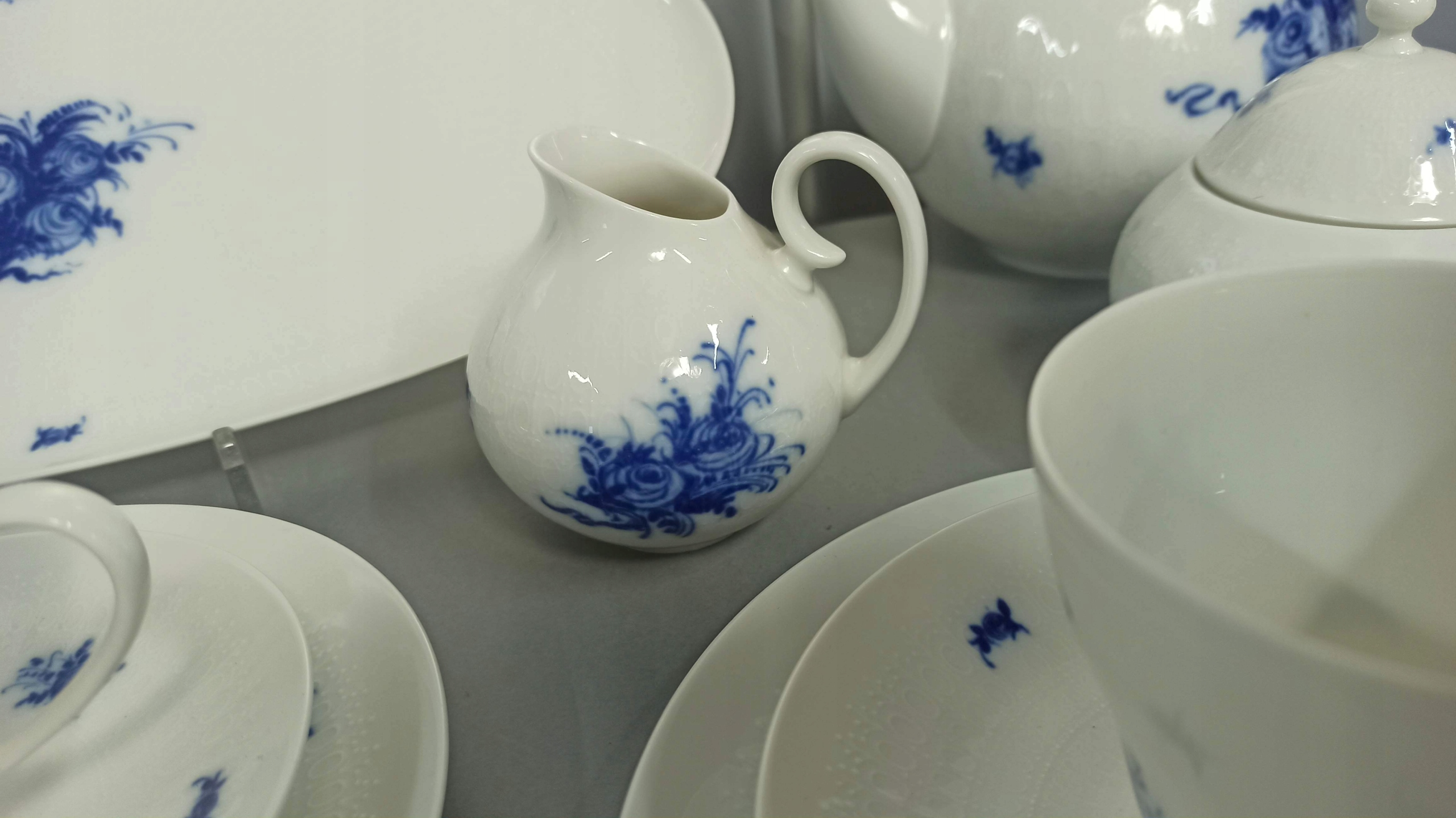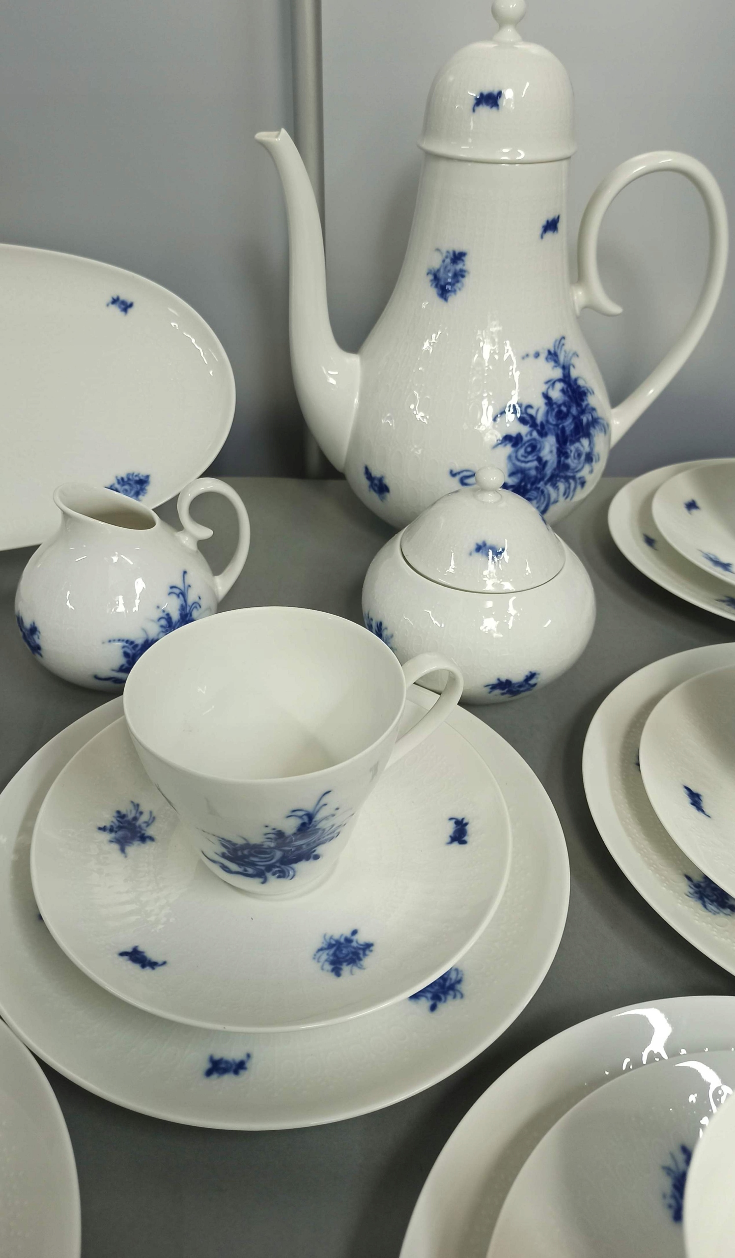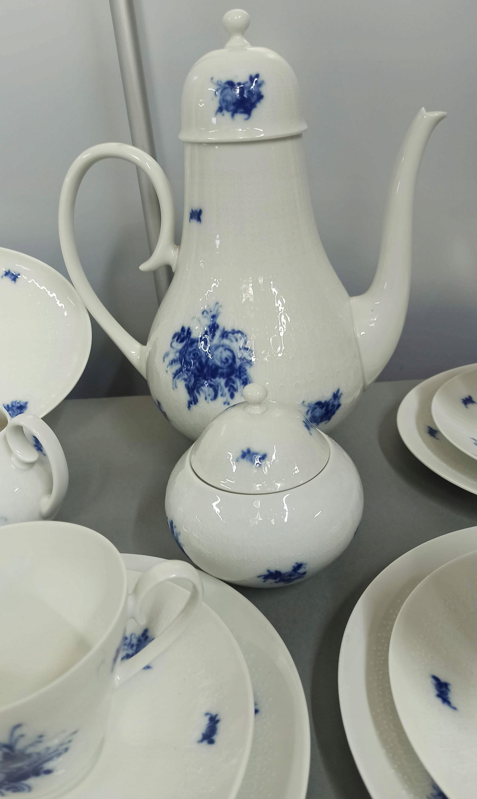 Белый фарфор с рельефной поверхностью с декором «Blue Blumen».