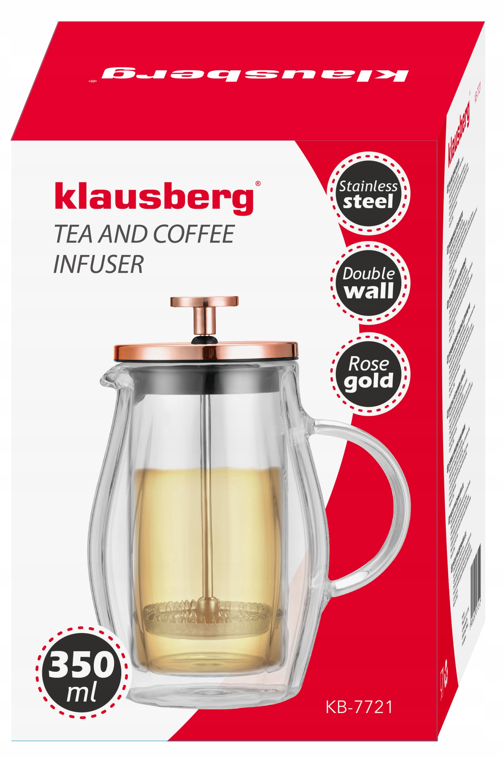 кофе/ чайный пивовар 0,35L Французская пресса розовое золото  h1>  marek: klausberg  h2>  Код продукта: KB-7721  H2>