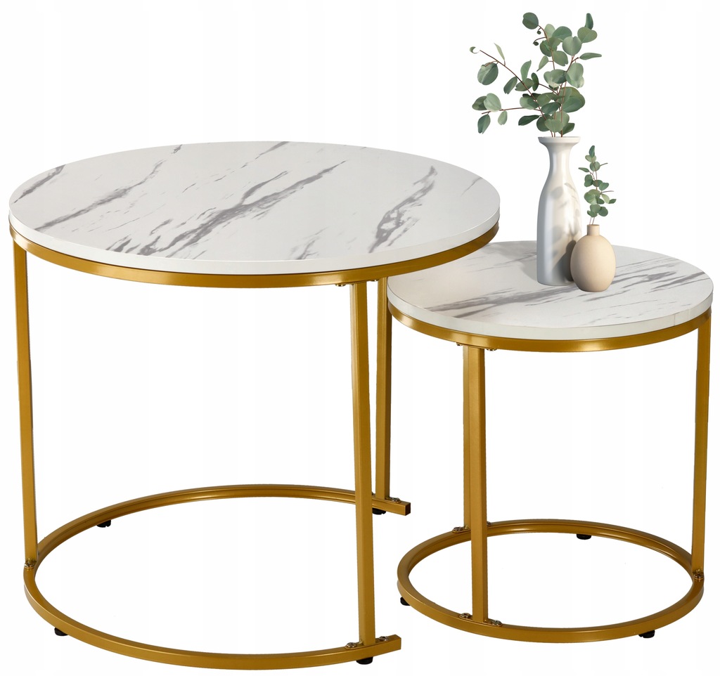 Столешницы из имитации белого мрамора придают им уникальный характер, одновременно подчеркивая роскошный внешний вид. Золотые рамы добавляют элегантности и делают журнальный столик центром внимания любой комнаты.