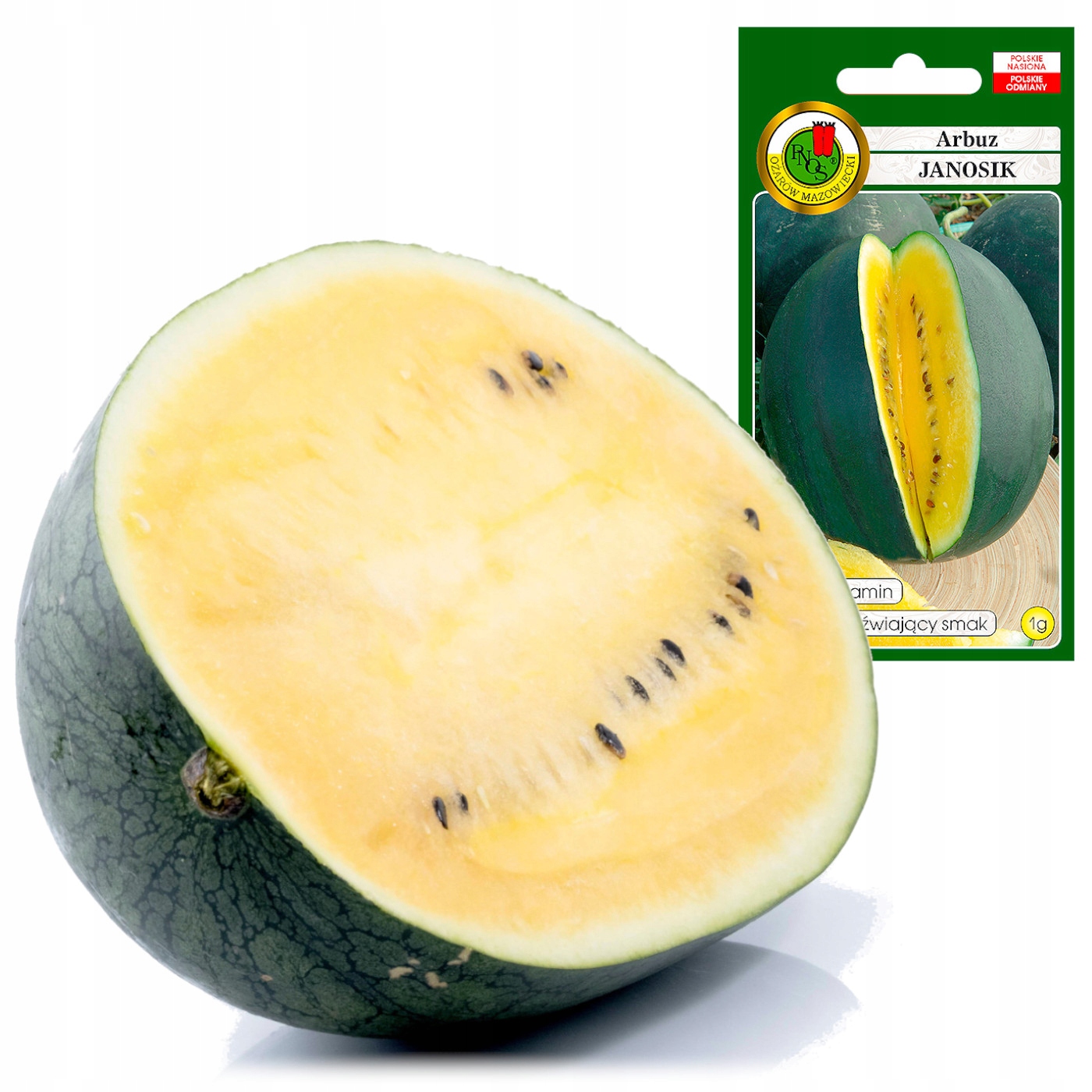 Арбуз ЯНОСИК — среднеранний сорт, устойчивый к холодам. Очень вкусный и характерный благодаря желтой мякоти. Растения стелющейся формы, сильноветвистые, средней силы роста. Подходит для выращивания в грунте, горшках и под укрытием.
