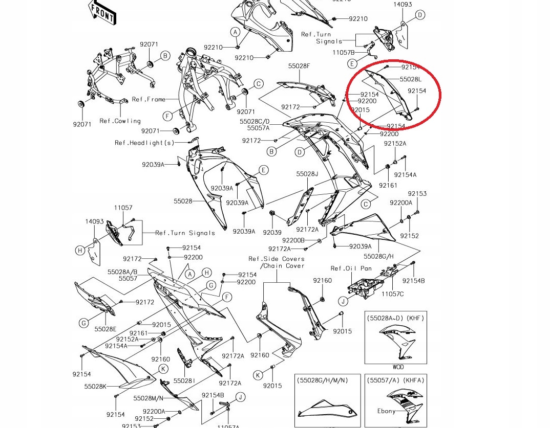 KAWASAKI NINJA 650 17-19 БІЧНИЙ ОБТІЧНИК ЗАЛИВНА КРИШКА