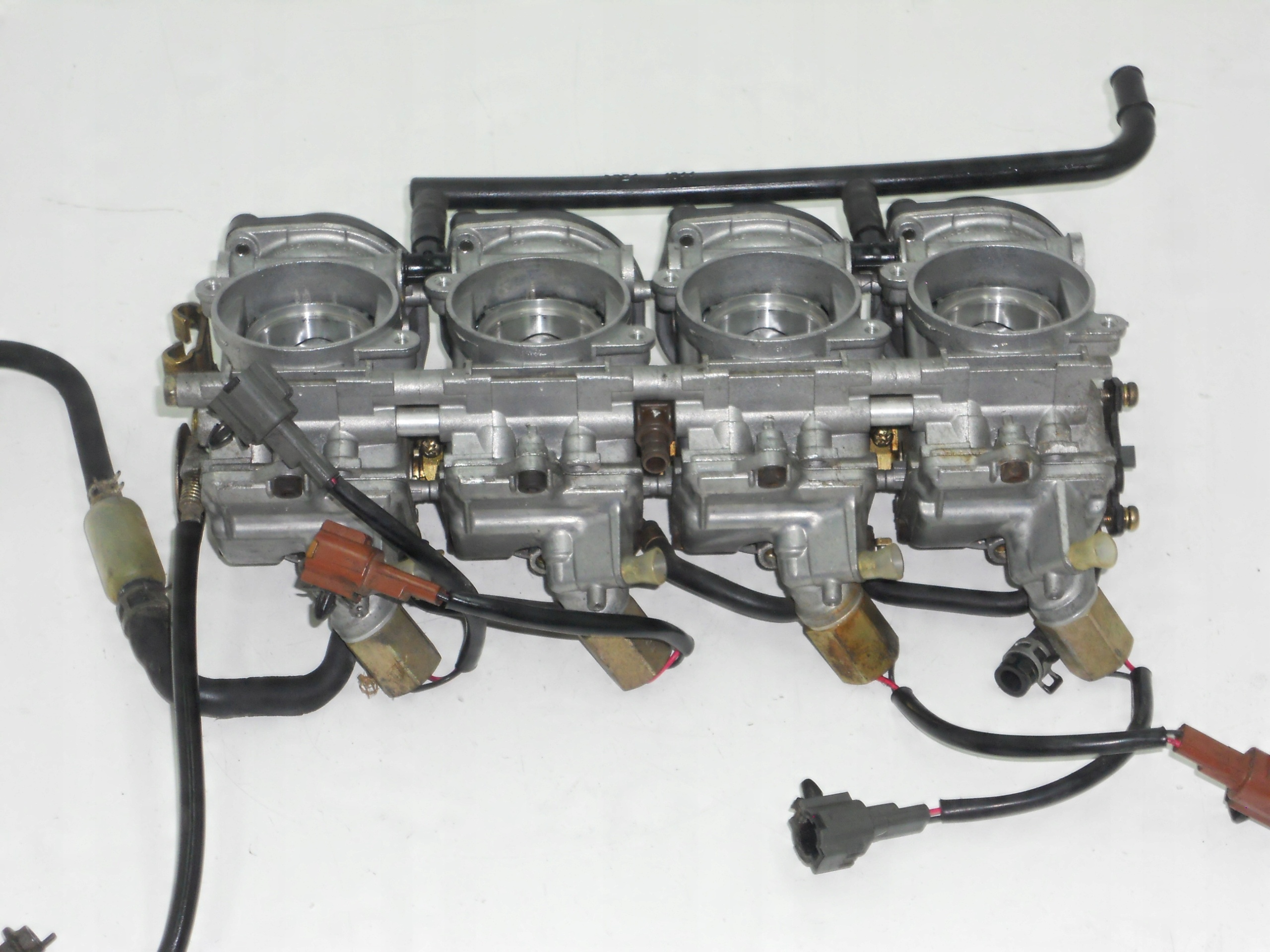 kawasaki zx6r (00-02) Карбюратор карбюраторов. Оригинальная и полностью функциональная часть, все крепежные элементы. Перед демонтажем мотоцикл был запущен, но мы рекомендуем регулировать карбюраторы после установки. Очень хорошее состояние, Хорошая цена, я рекомендую это!