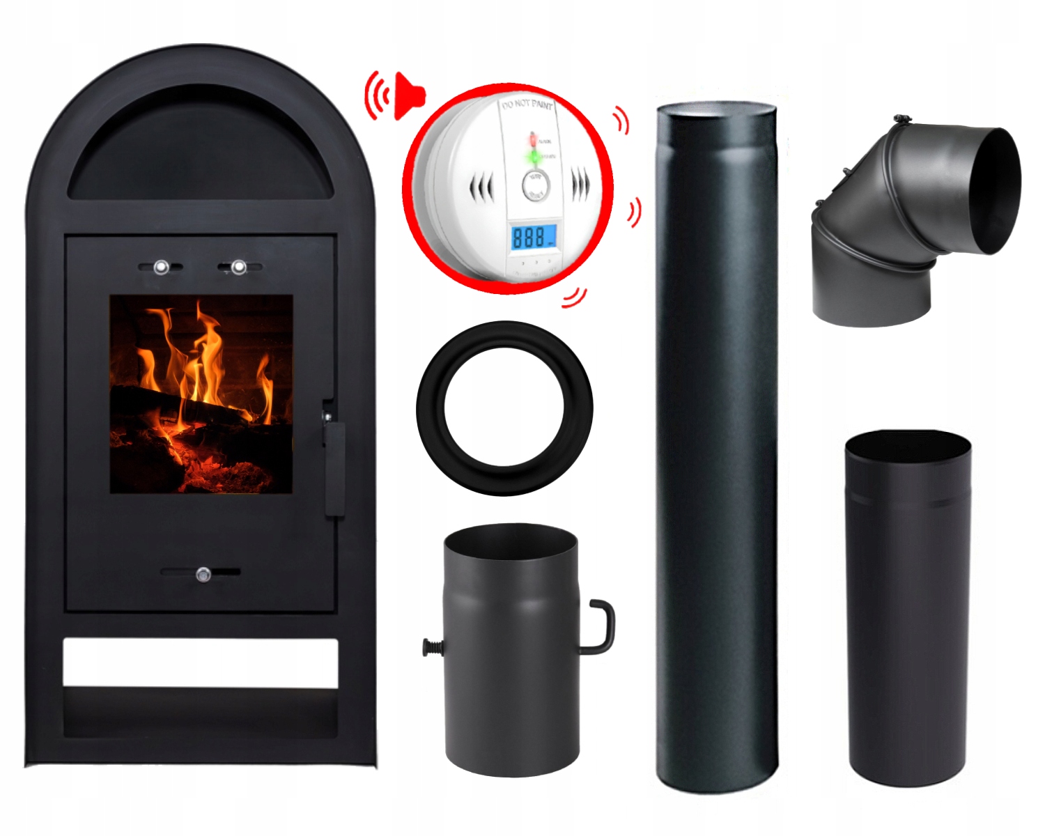 КОЗЬЯ ПЕЧЬ ОТДЕЛЬНО СТОЯЩИЙ СТАЛЬНОЙ КАМИН 7,5 кВт + ТРУБЫ, ДАТЧИК