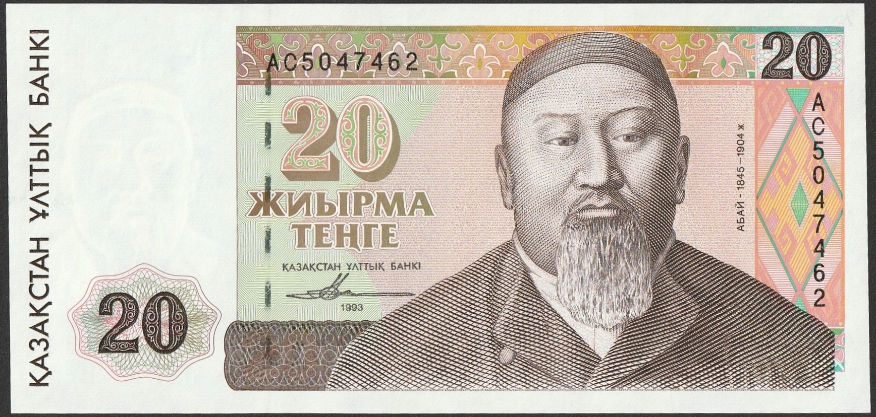 Kazachstan 20 tenge 1993 - AC - Abaj - stan bankowy UNC