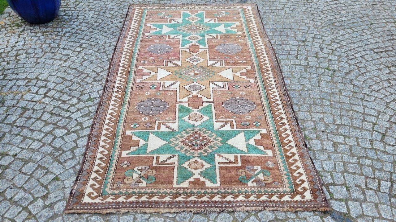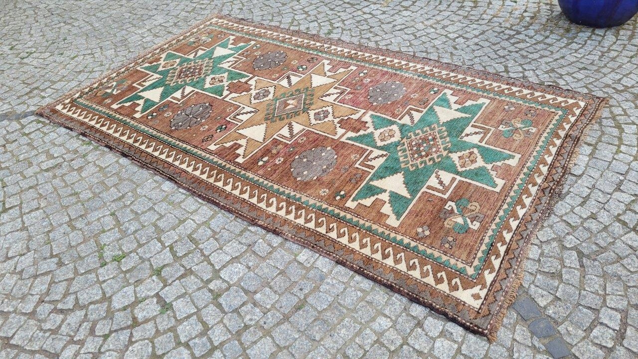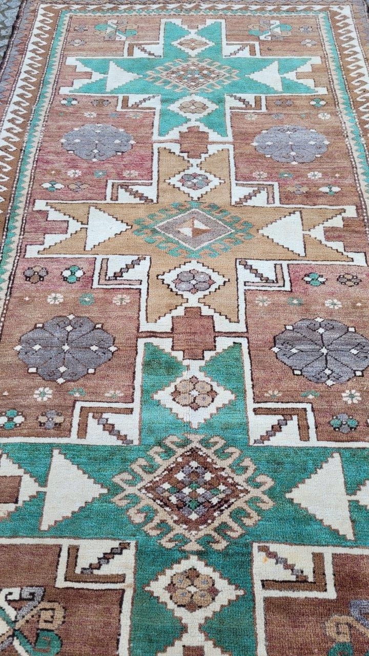 Анатолийский кочевой казахский ковер. Сплетено вручную из высококачественной шерсти. Для него характерен плотный флис, красивые цвета и узоры. Состояние очень хорошее, видно на фотографиях.