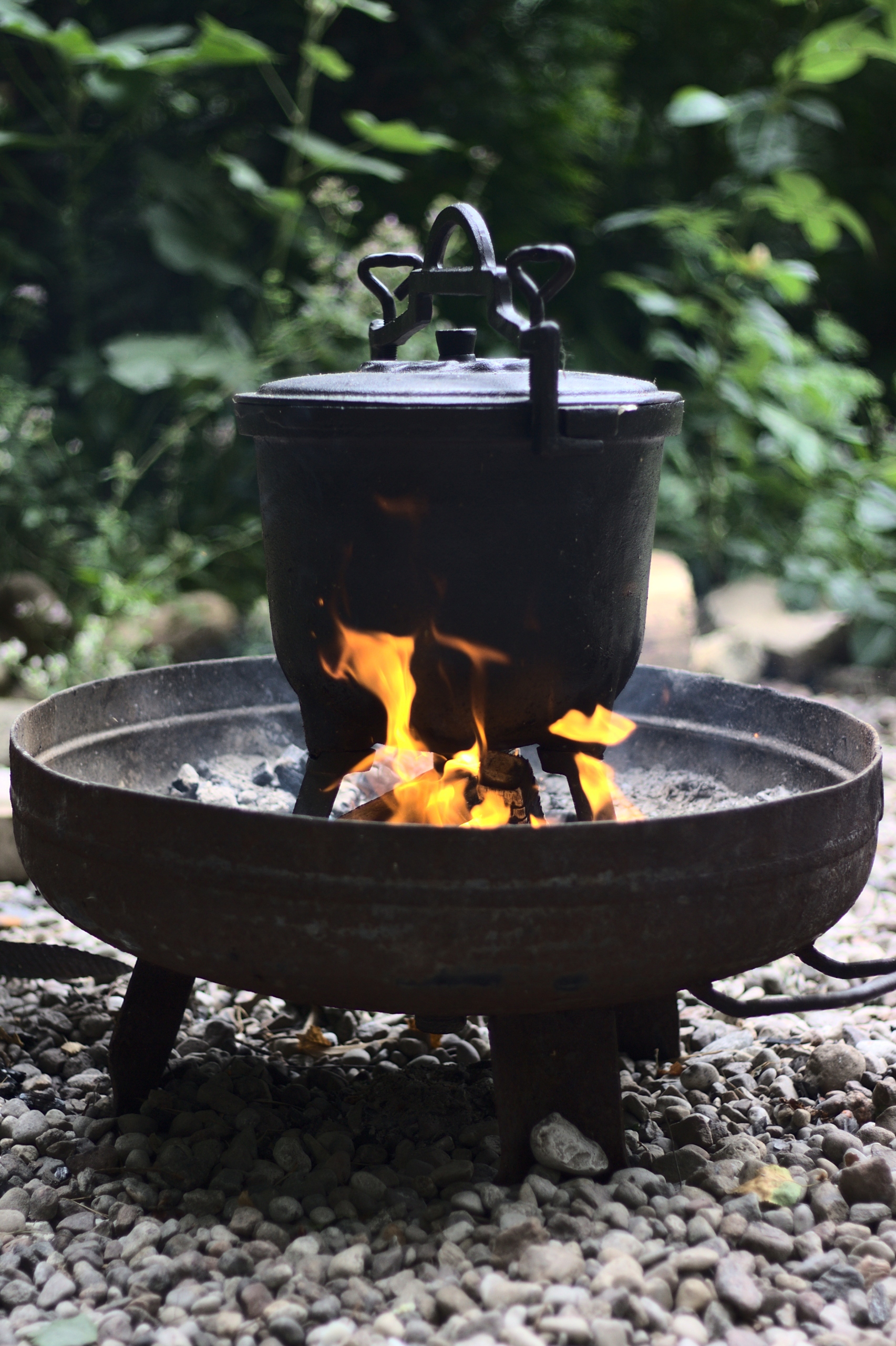 Казан можно поставить на ножках прямо на огонь или повесить на ручку над источником огня.