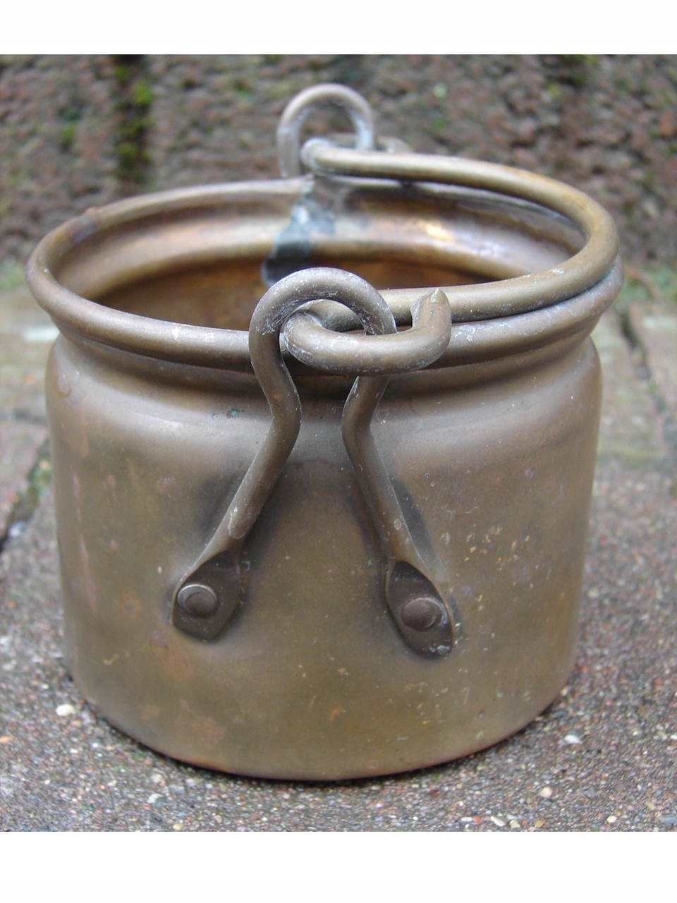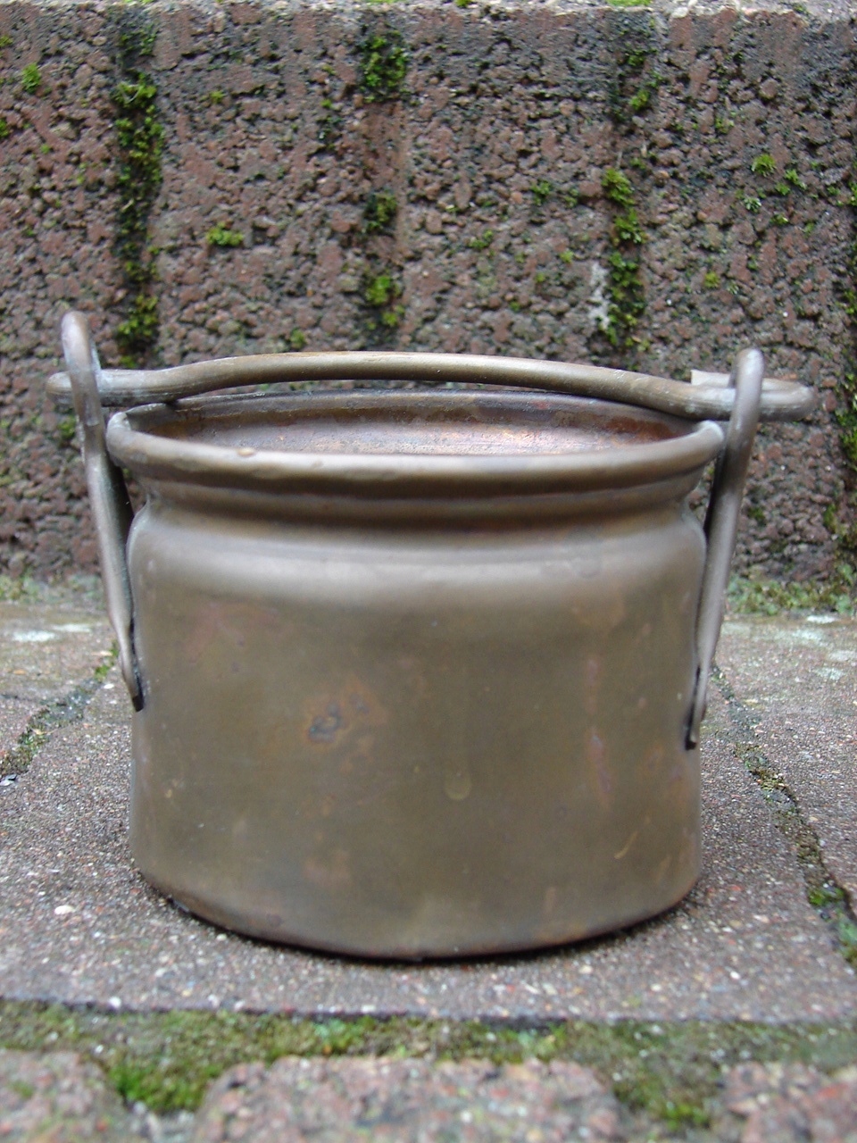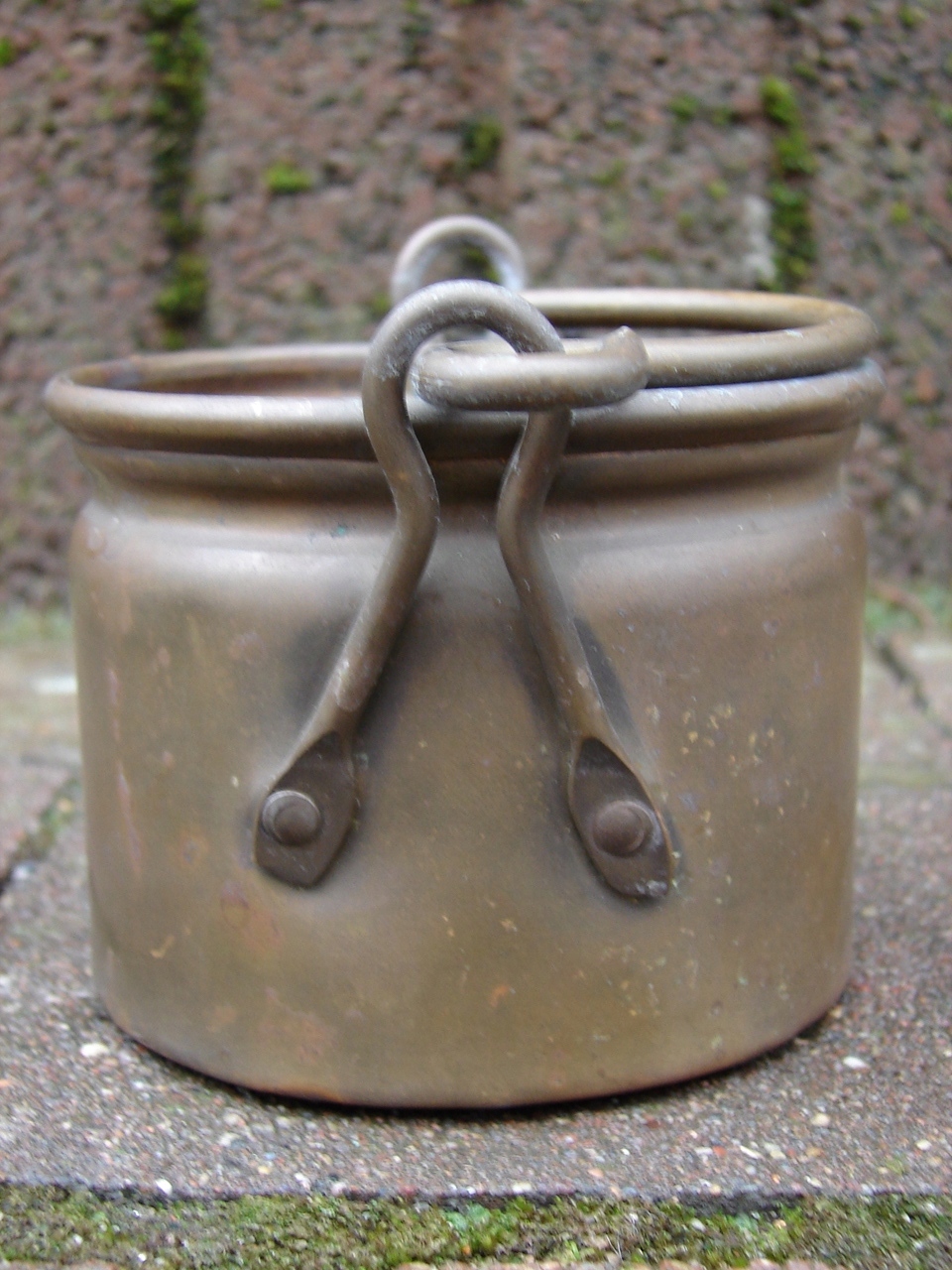 Небольшой казан-крышка для вазона с ручками. Изделие ручной работы из латуни.