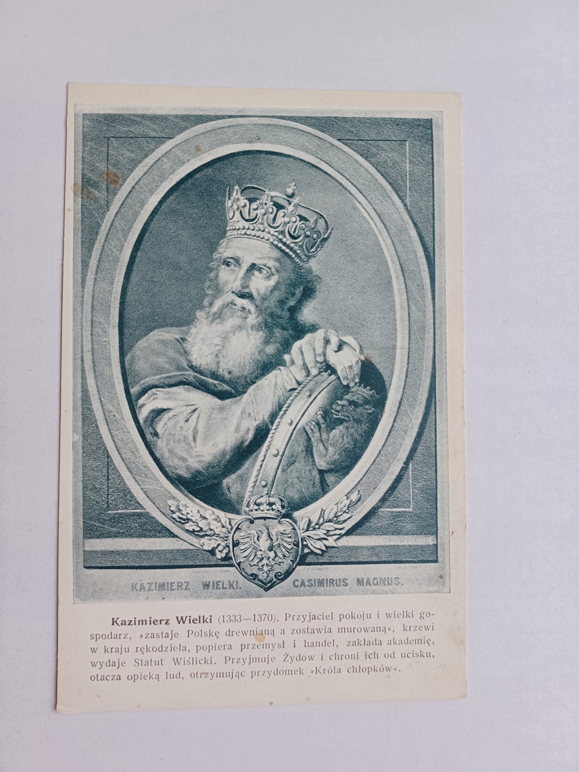 KAZIMIERZ WIELKI KRÓL POLSKI przedw. POCZTÓWKA-CEGIEŁKA NA DOM NAUCZYCIELA