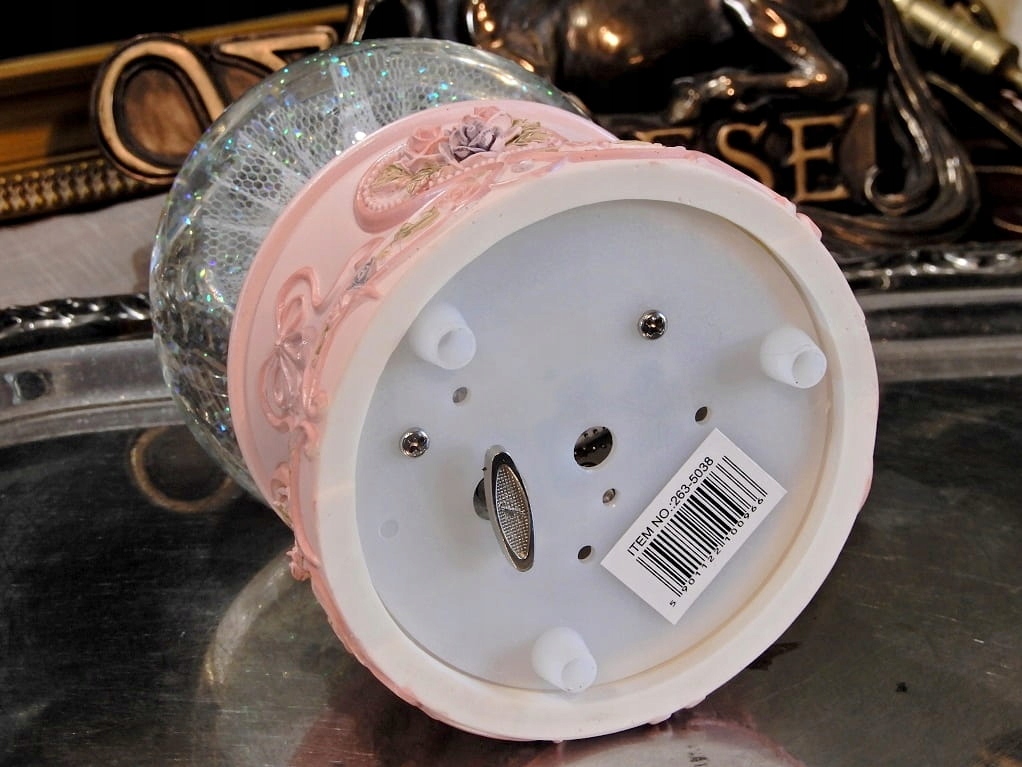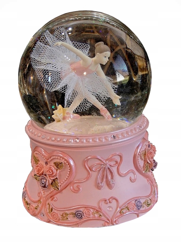 В нем красивая балерина, которая кружится при включении музыкальной шкатулки, а при встряхивании появляется "снег", прозрачные хлопья