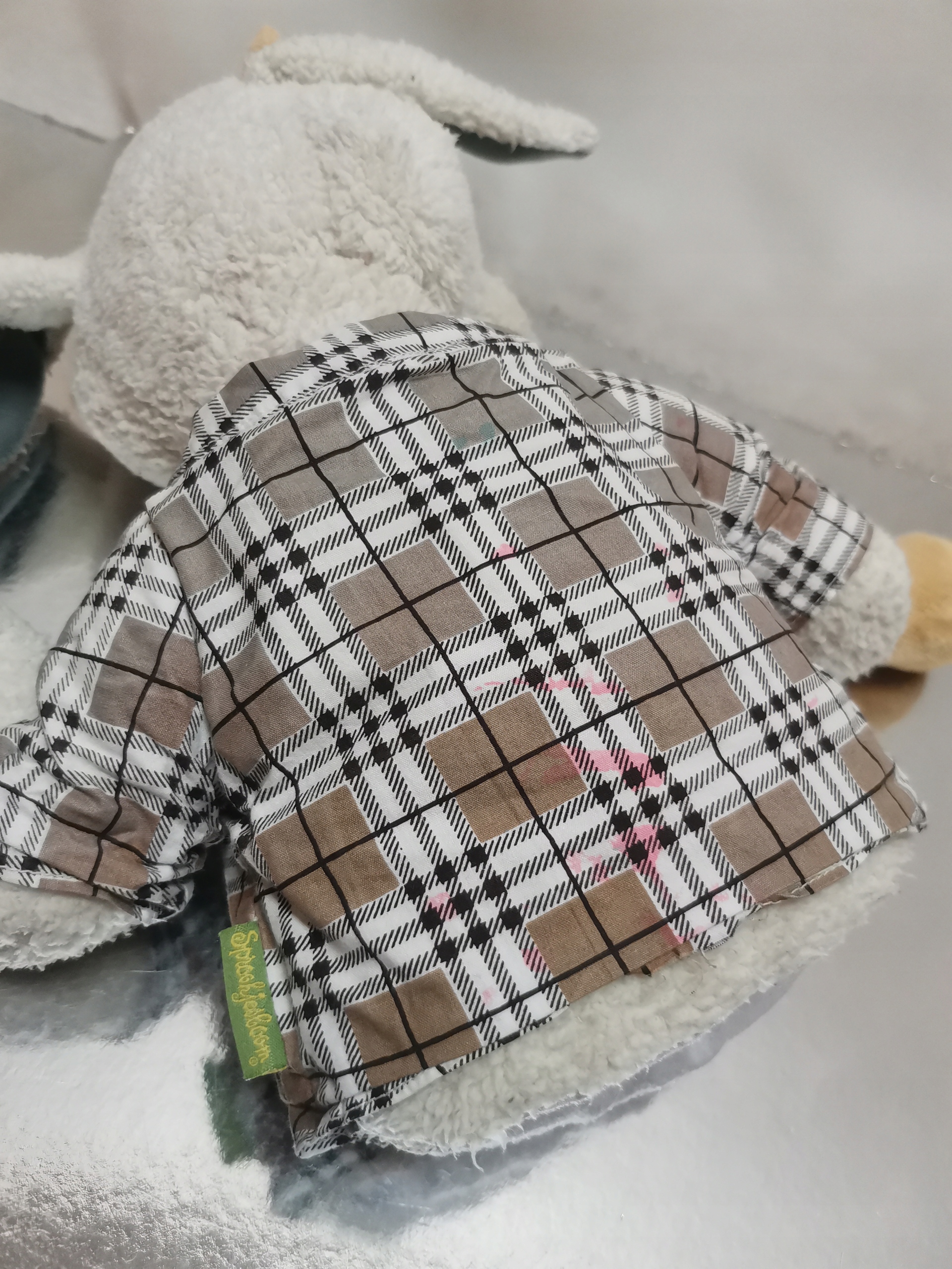 отличный кремовый коз в клетчатой рубашке в виде марионетки с подвижным лицом.
